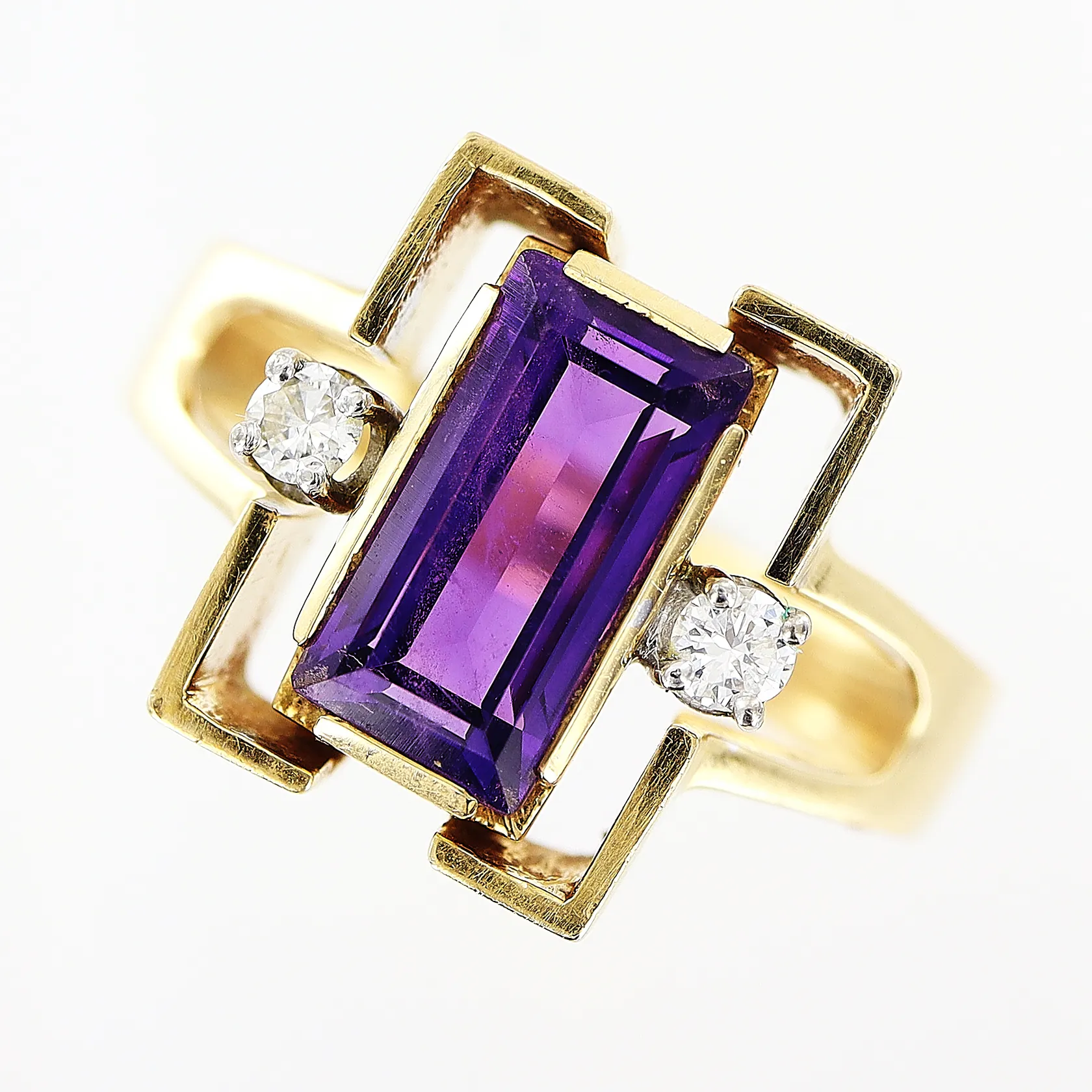 Ring lila sten och diamanter 2 x ca 0,05ct stl:17¼ bredd 3-13,5mm, 18K Vikt: 7,6 g.
