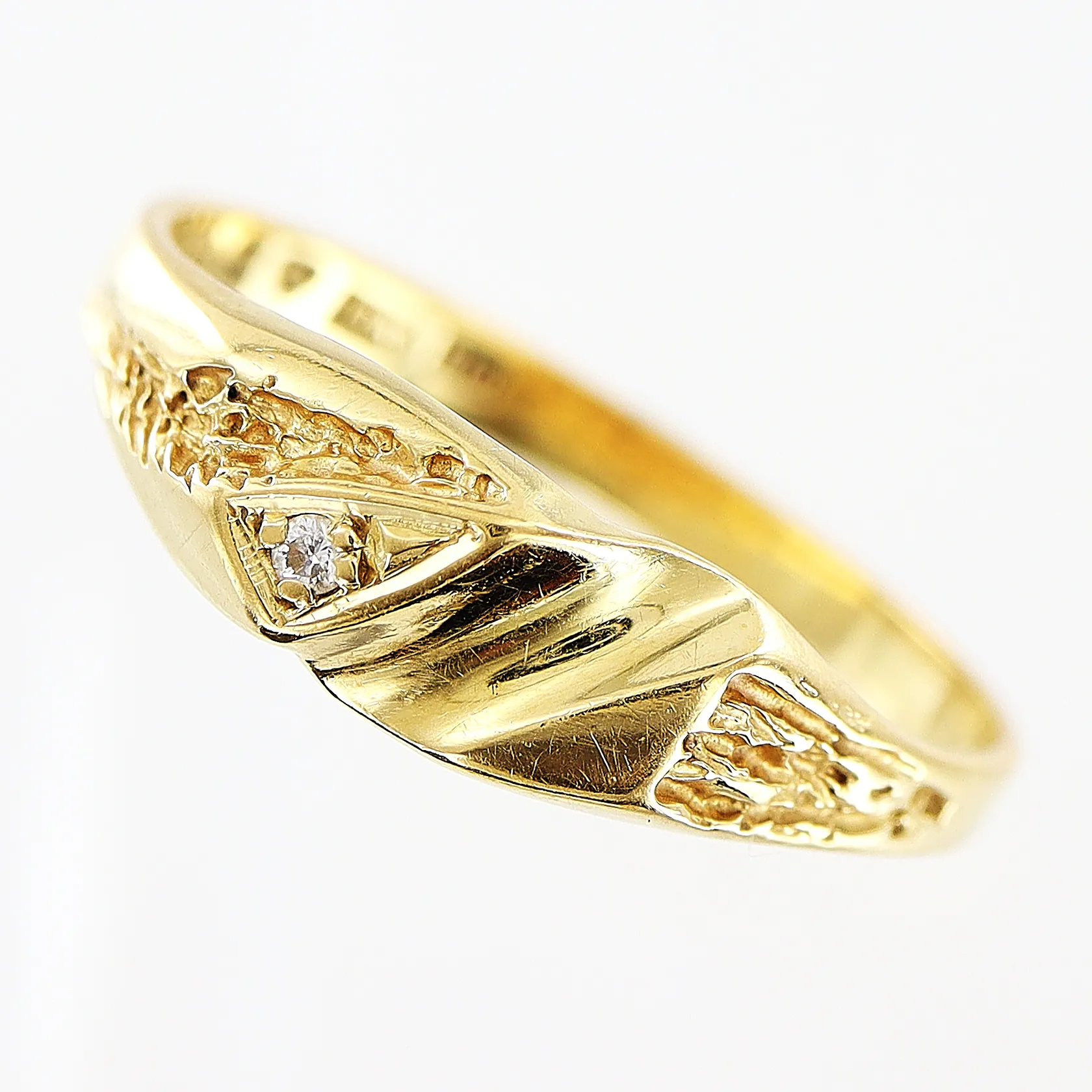Ring med diamant ca 0,01ct stl:17¼ bredd 2-5mm, 18K Vikt: 1,8 g.