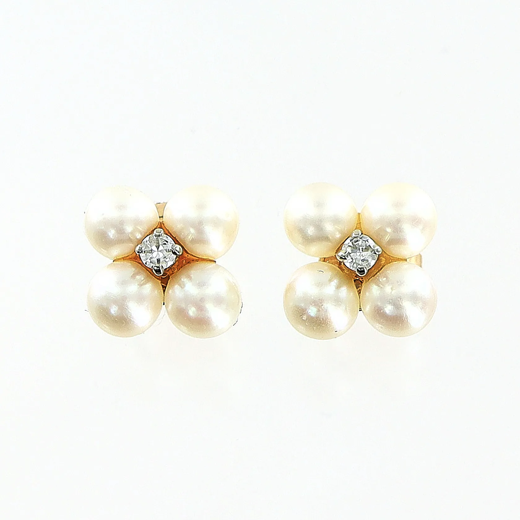 Ett par örhängen med odlade pärlor och vita stenar, 8,5x8,5mm, 18K Vikt: 1,8 g.