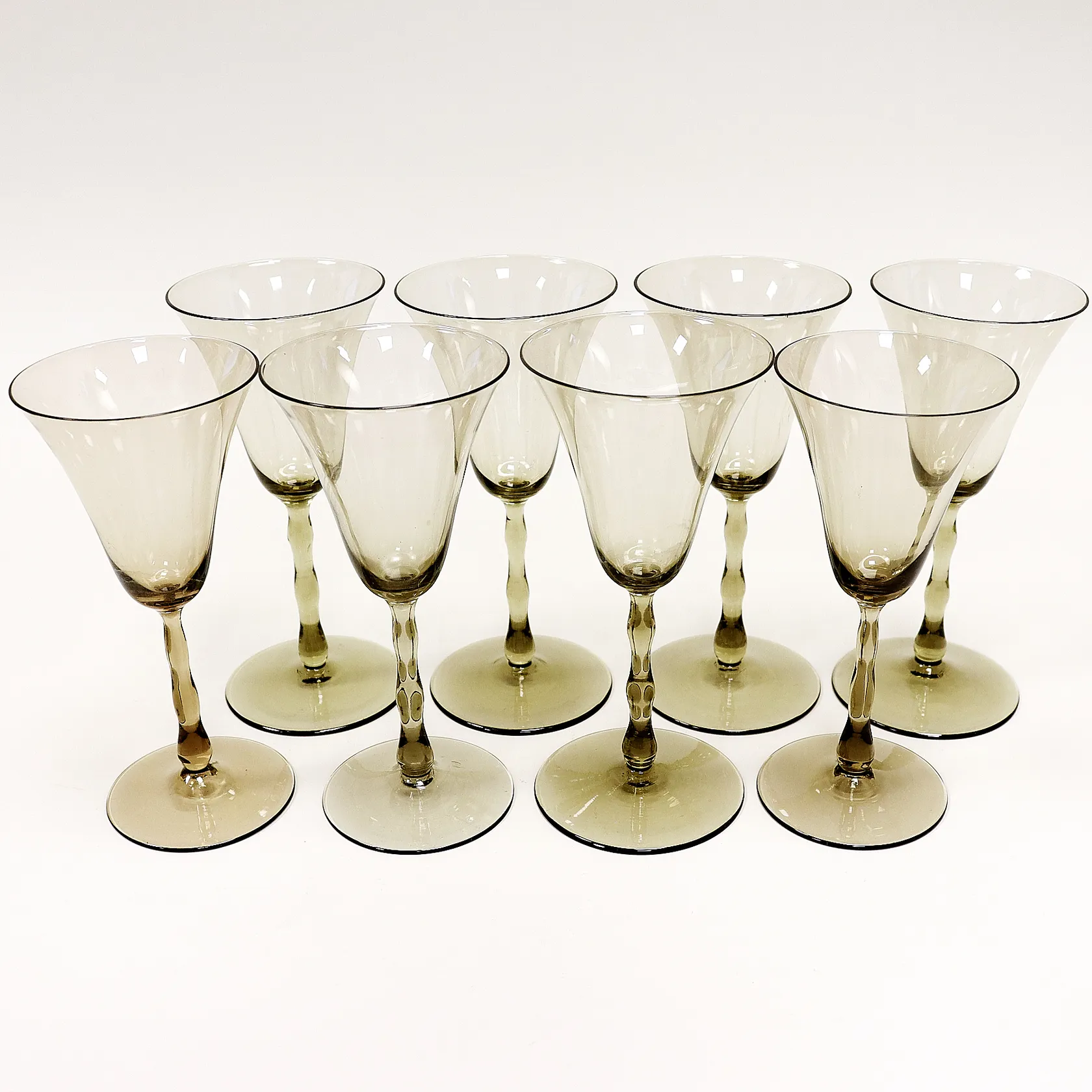 8 sherryglas, omärkta, möligen Simon Gate, 16cm, rökfärgat glas.
