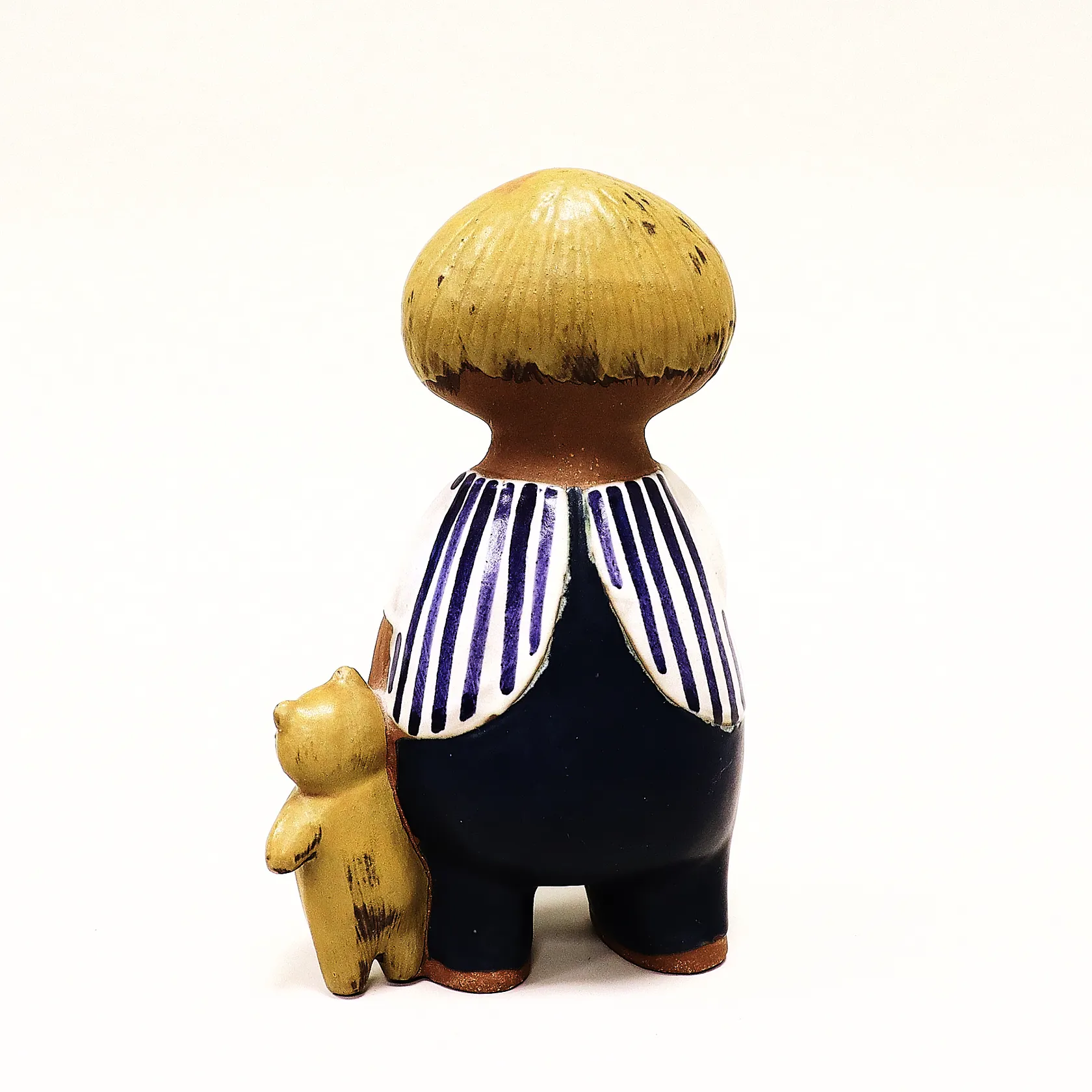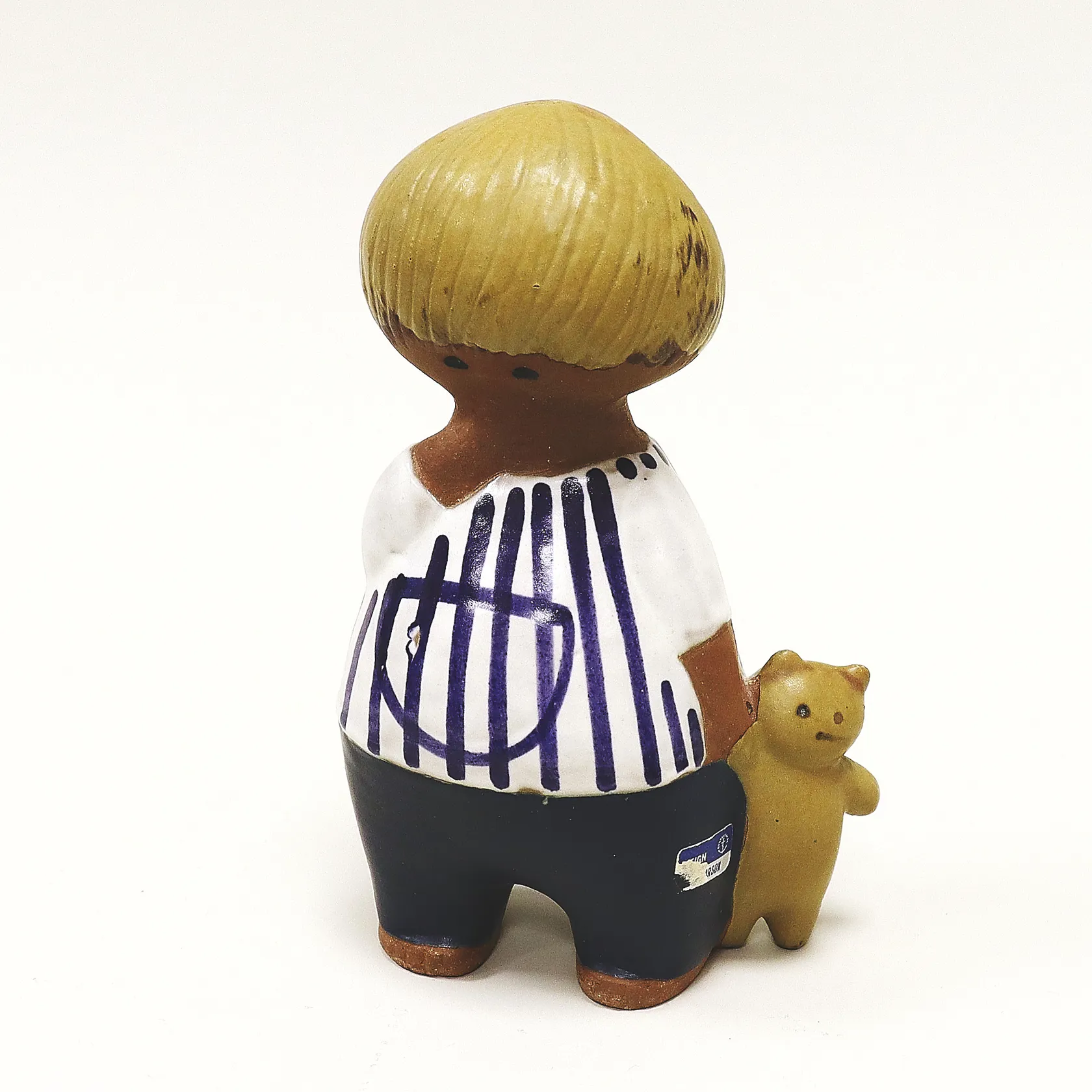 Figurin Lisa Larson, Malin ur serien "Larsons Ungar", höjd 18cm, stengods, teddybjörnen har något kantstötta öron, Gustavsberg.