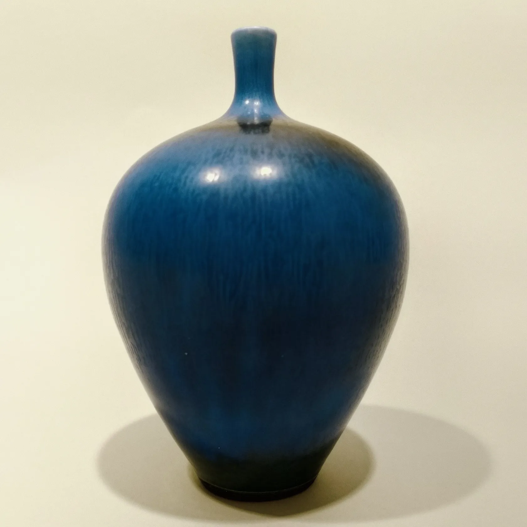 Vas Berndt Friberg, Gustavsberg Studio, blå harpälsglasyr, höjd 13cm, signerad, märkt med Gustavsbergs studiohand, stengods. Omfattas av BUS-avgift.