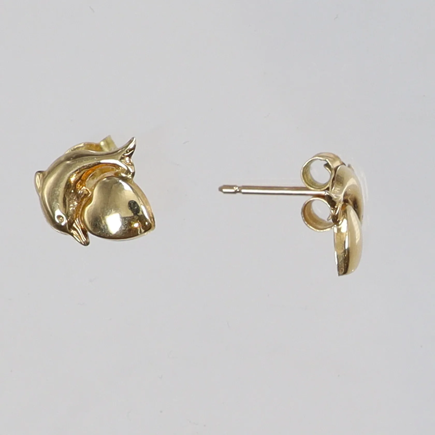 Ett par Örhängen "delfiner och hjärtan" 8x8mm 18K Vikt: 0,5 g.