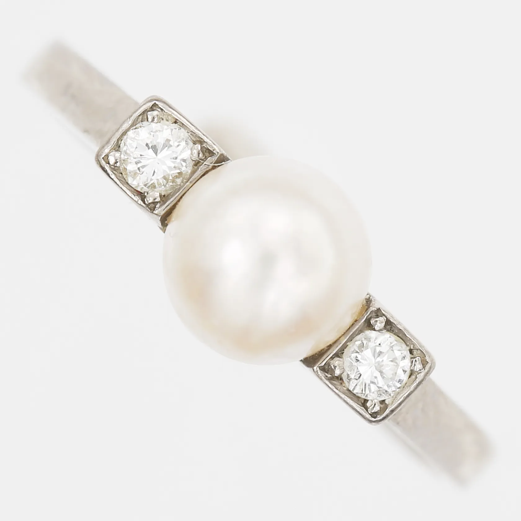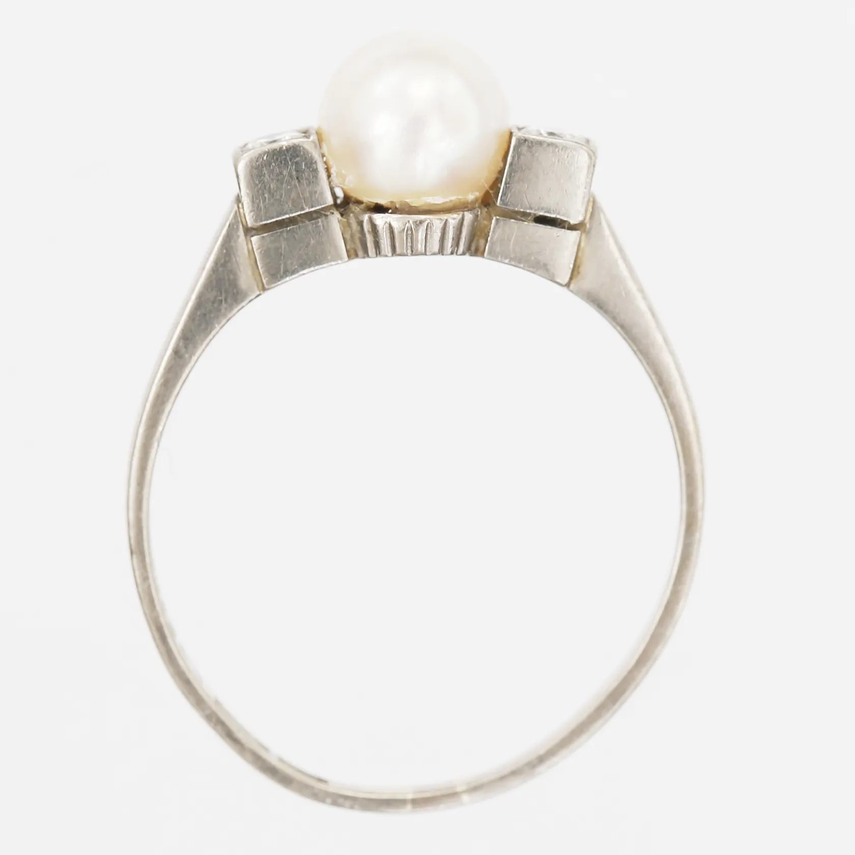 Ring med odlad saltvattenpärla, Ø 6mm, samt briljantslipade diamanter totalt 0,08ct enligt gravyr, stl: 17, 18K vitguld Vikt: 2,8 g.