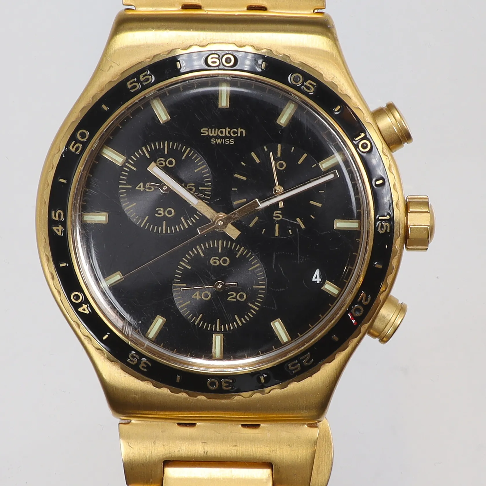 Herrur Swatch In The Black, Ø42mm, ref nr.SR936SW, quartz, kronograf, viklås, repig, batteribyte