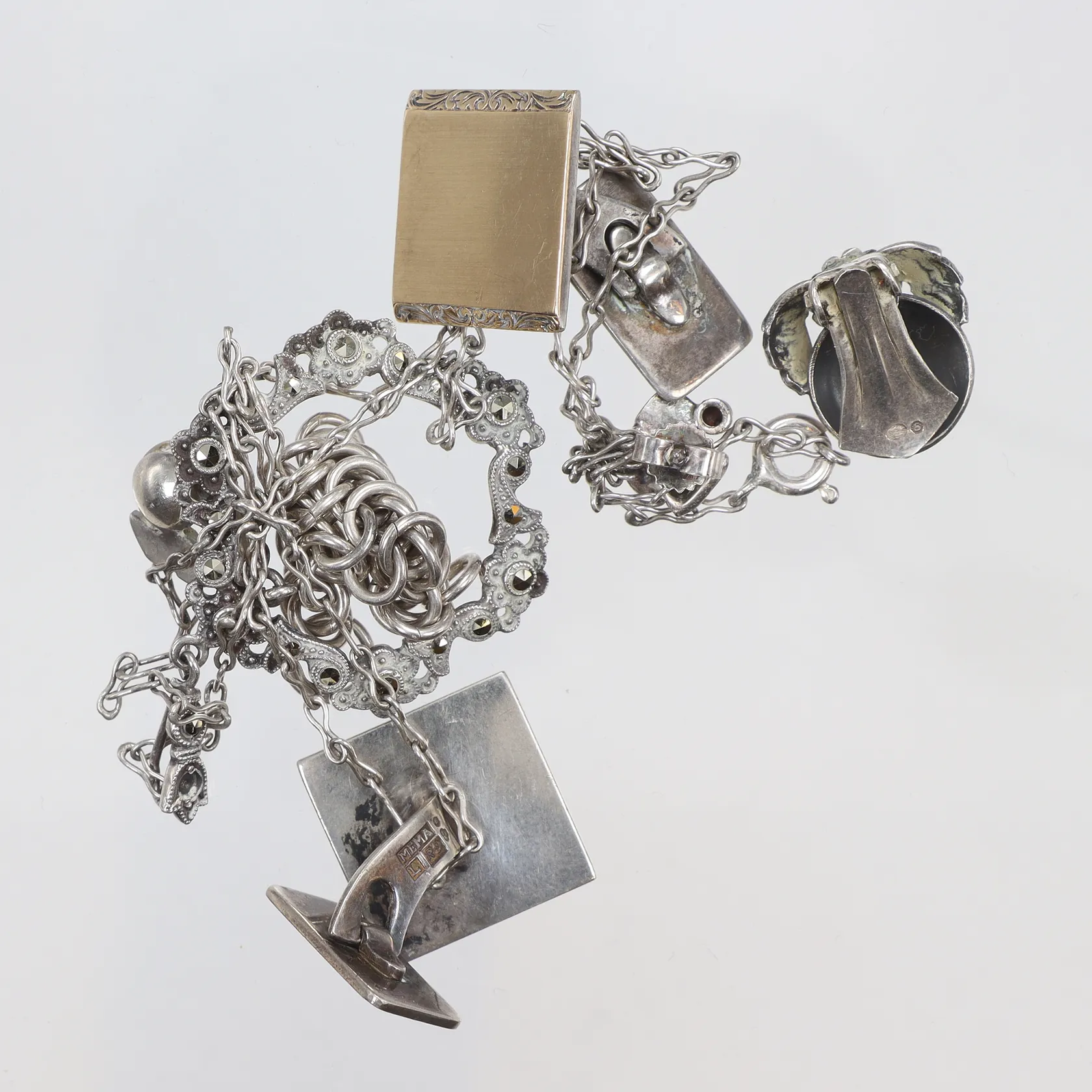Diverse silver, delvis defekt med pärla silver 830/1000 Vikt: 27,7 g.