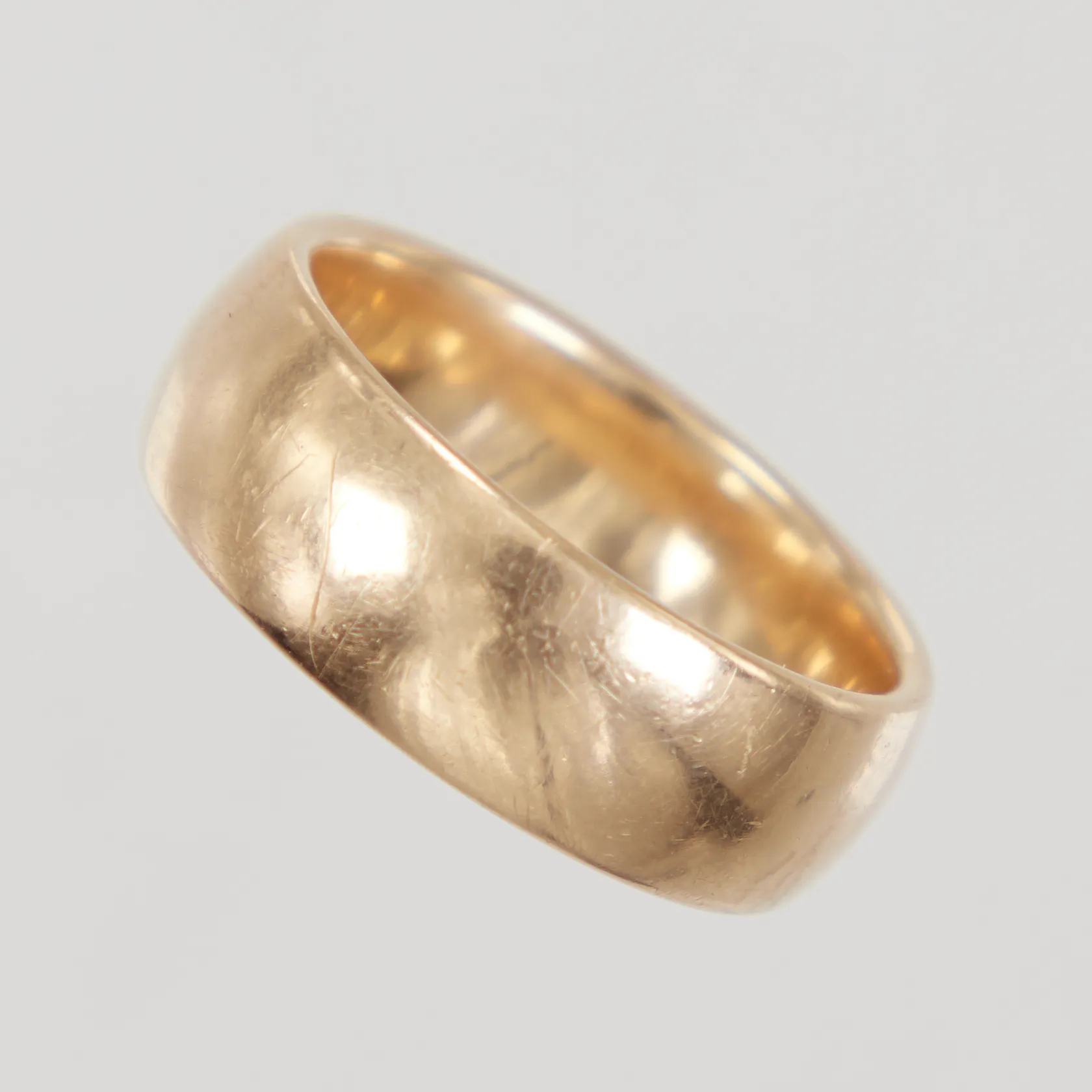 Ring, stl 18¼, bredd 7,1mm, gravyr, Schalins, 18K, Vikt: 10,3 g.