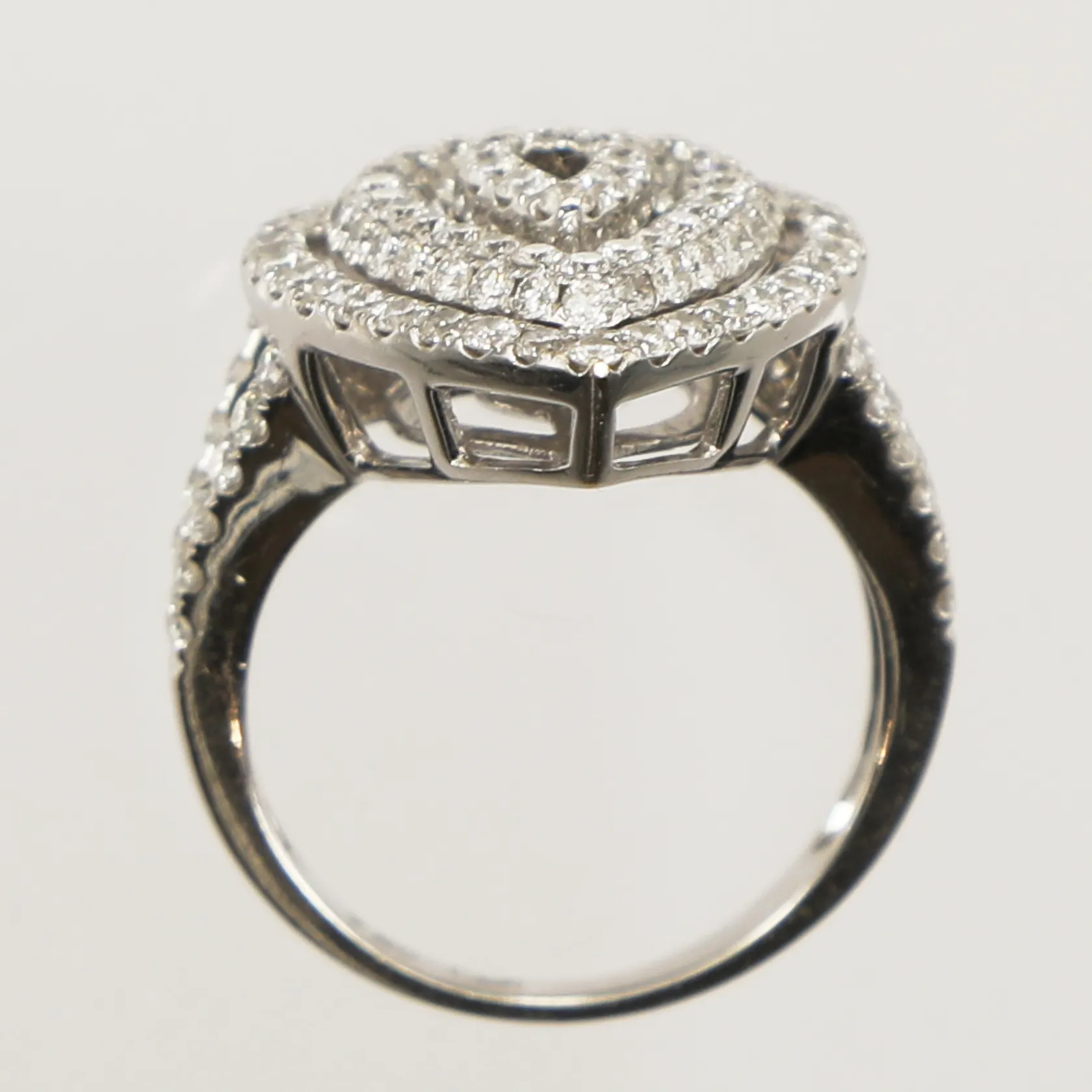 Ring med diamanter ca 171 x 0,01ct, kvalitet ca TW-W(G-H)/VS, stl: 17¼, otydlig gravyr, 18K vitguld. Vikt: 6,7 g.