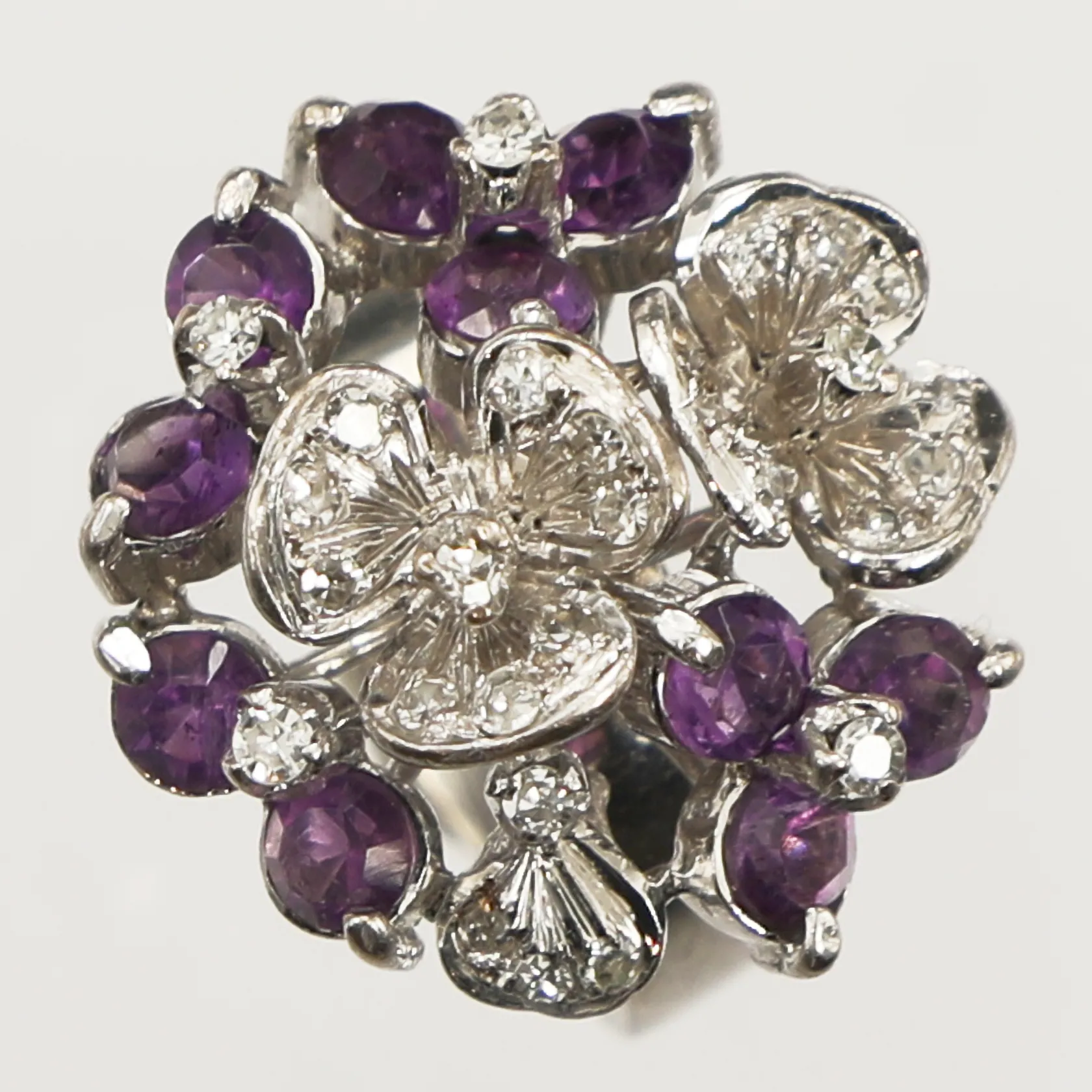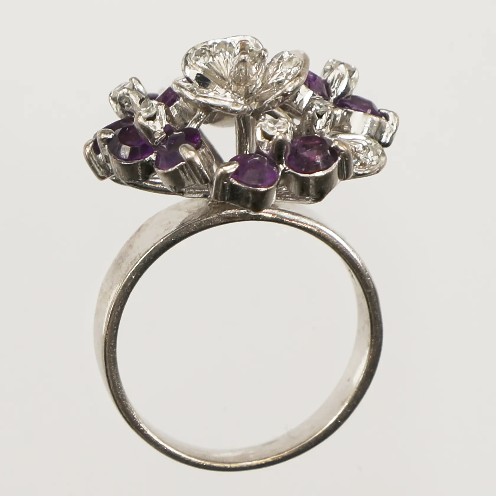 Ring med ametister och diamanter ca 28x 0,01-0,02ct, vitguld, stl 17, bredd 20mm, 18K Vikt: 6,8 g.