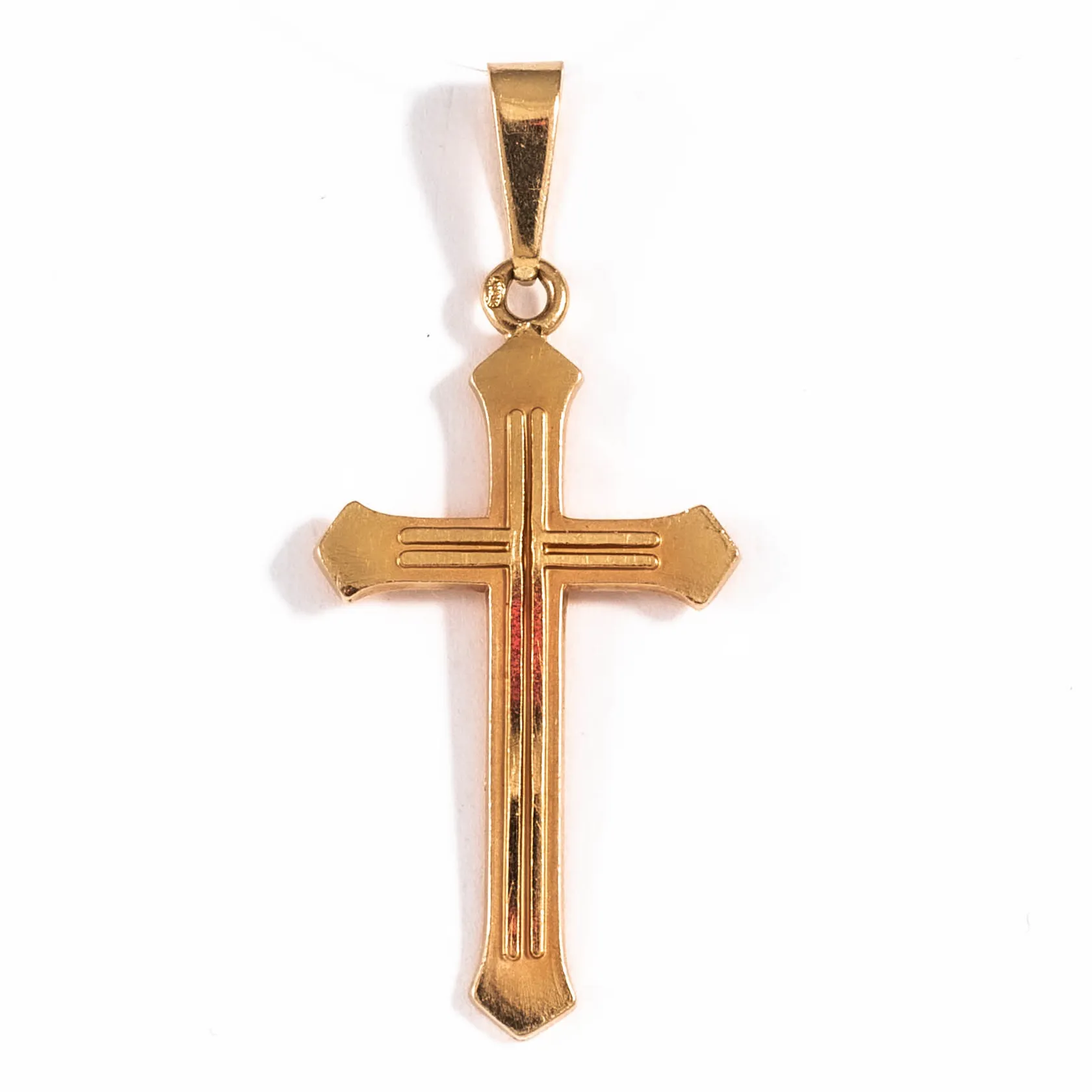 Hänge kors i 18K guld. Det är 16,5 mm brett, 38 mm långt inkl. ögla och väger 1,2g. Vikt: 1,2 g.