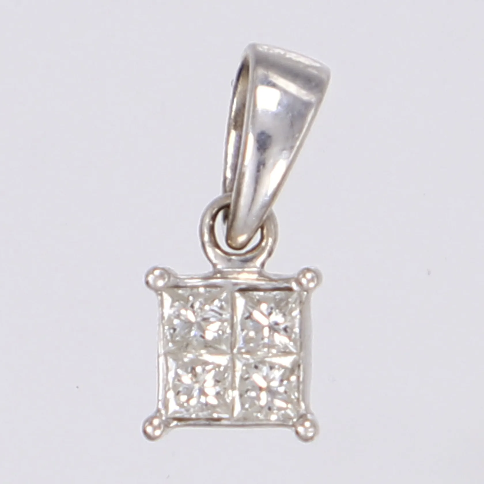 Hänge med dia 4 x ca 0,04ct prinsesslipade GHA vitguld 18K Vikt: 1 g.
