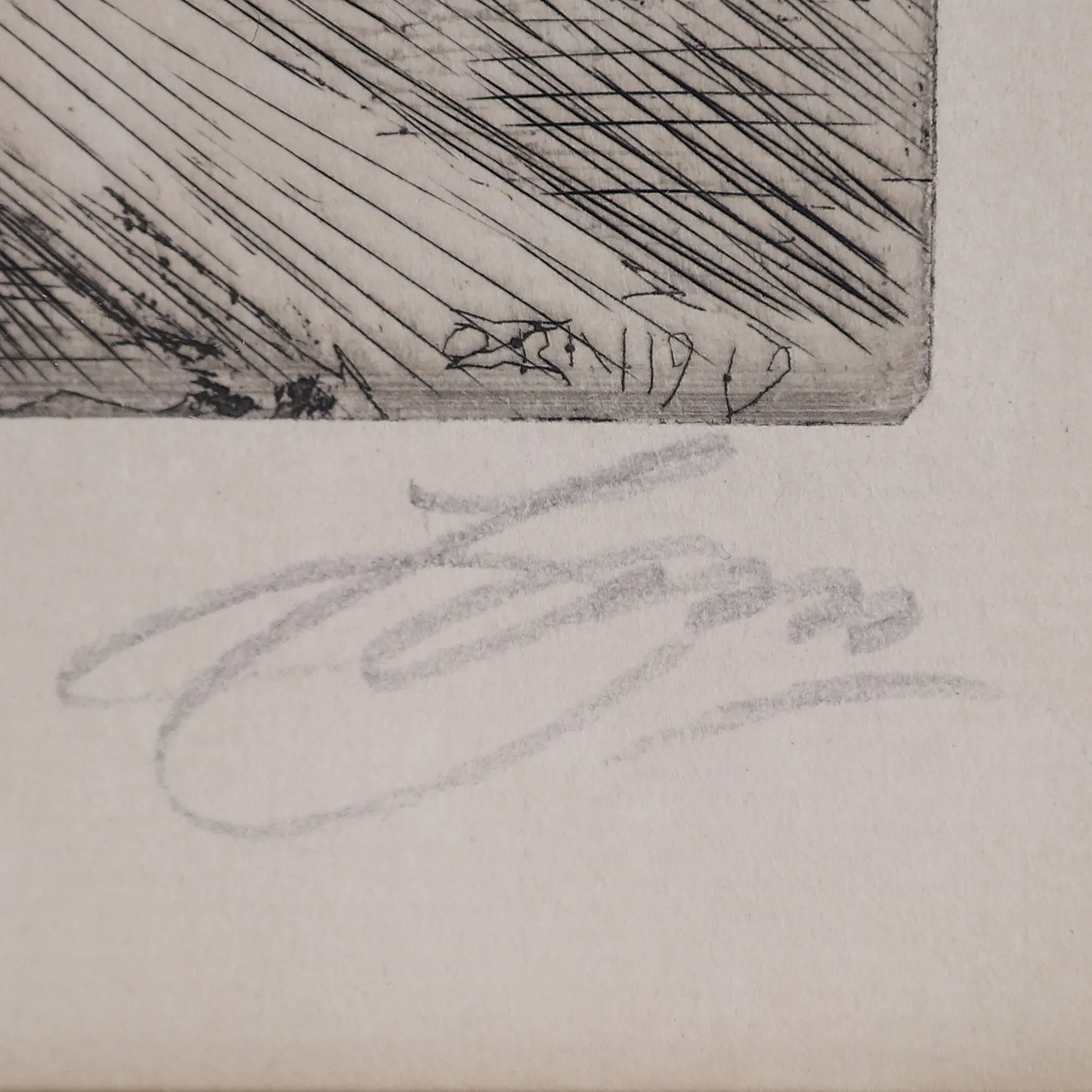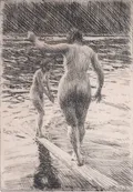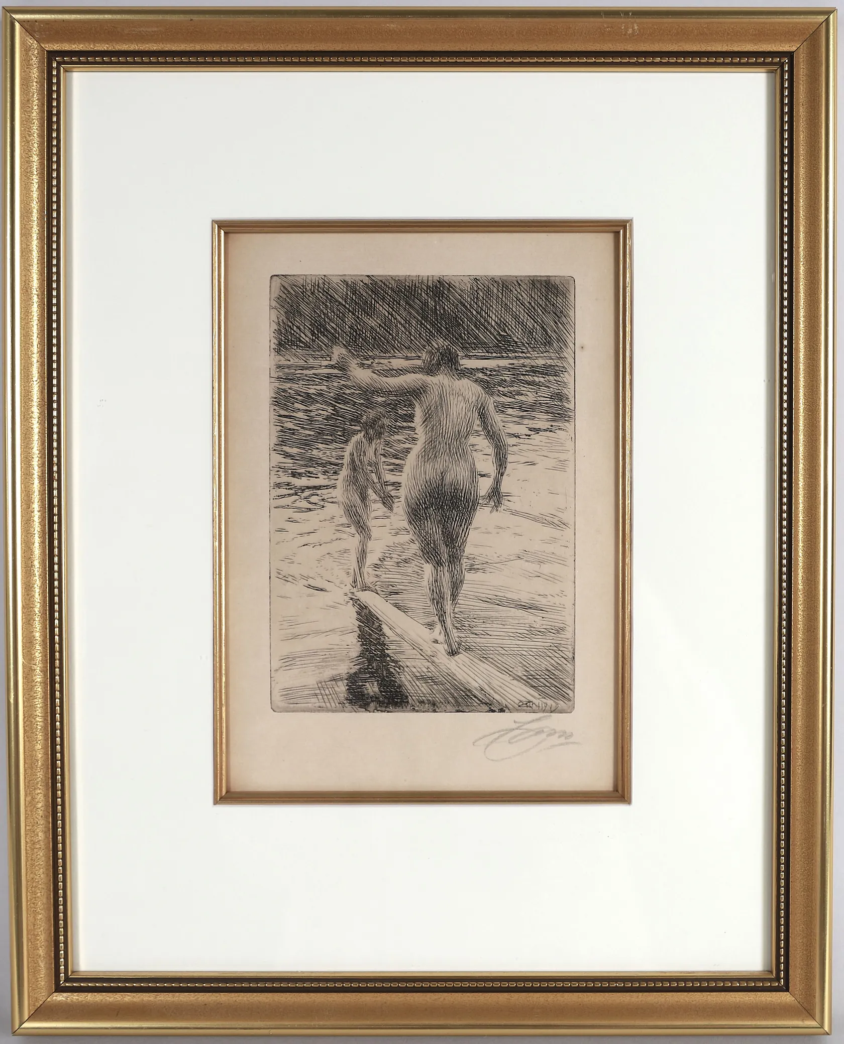 Tavla, etsning, Anders Zorn, "Balans", utförd 1919, signerad med blyerts, Asplund, 287, plåtstorlek, 16,6 x 11,5 cm, gulnad, någon fläck, ej examinerad ur ram. Skickas med postpaket.
