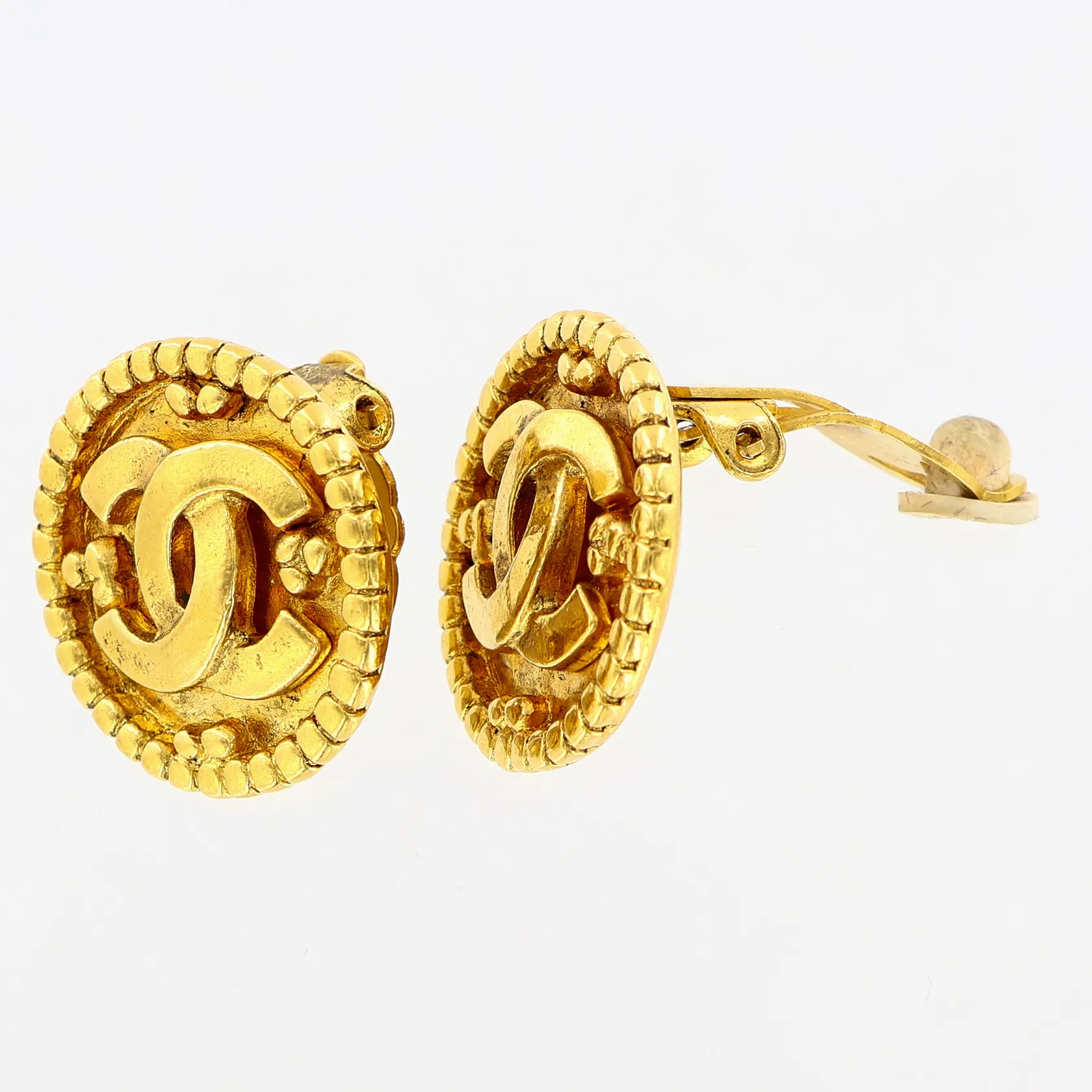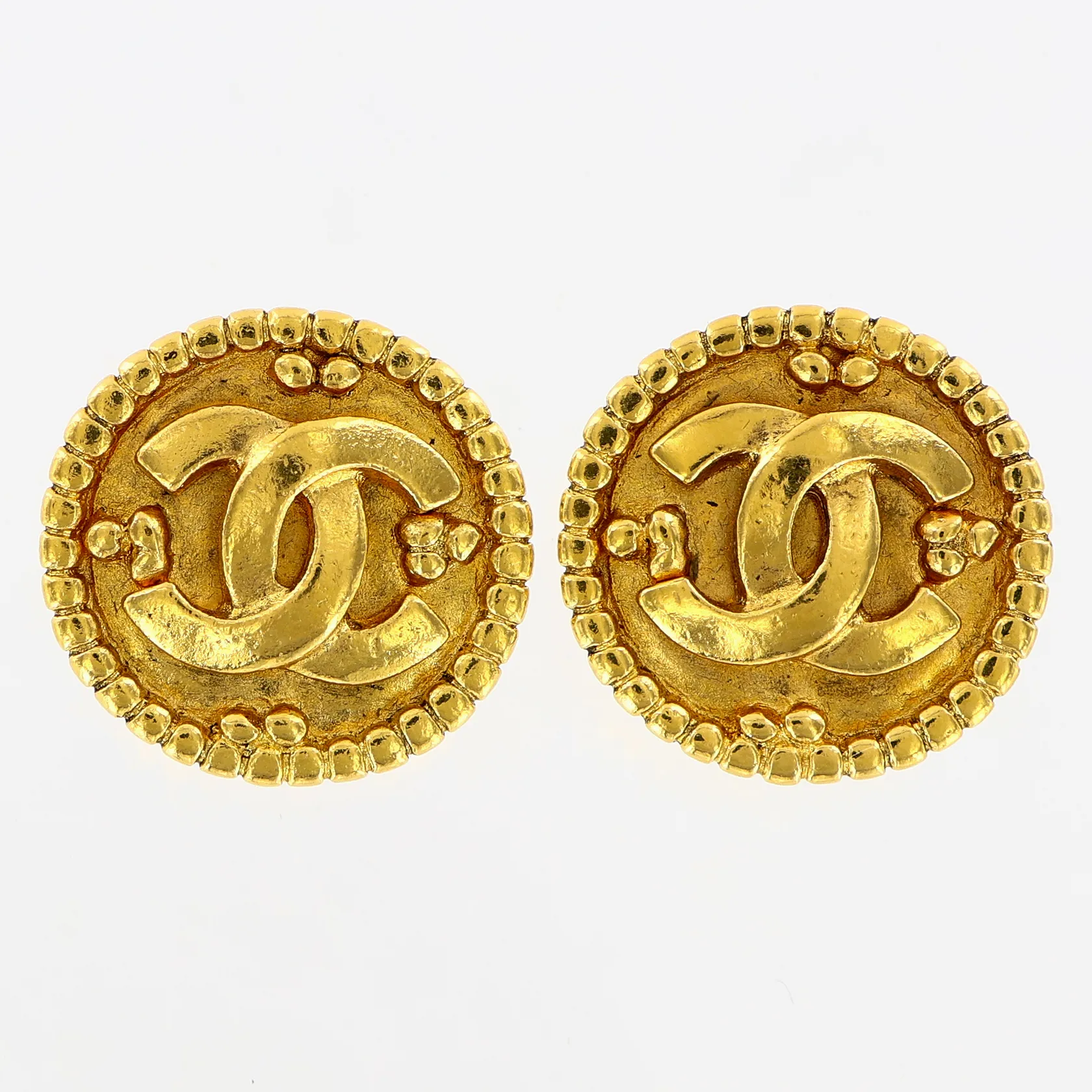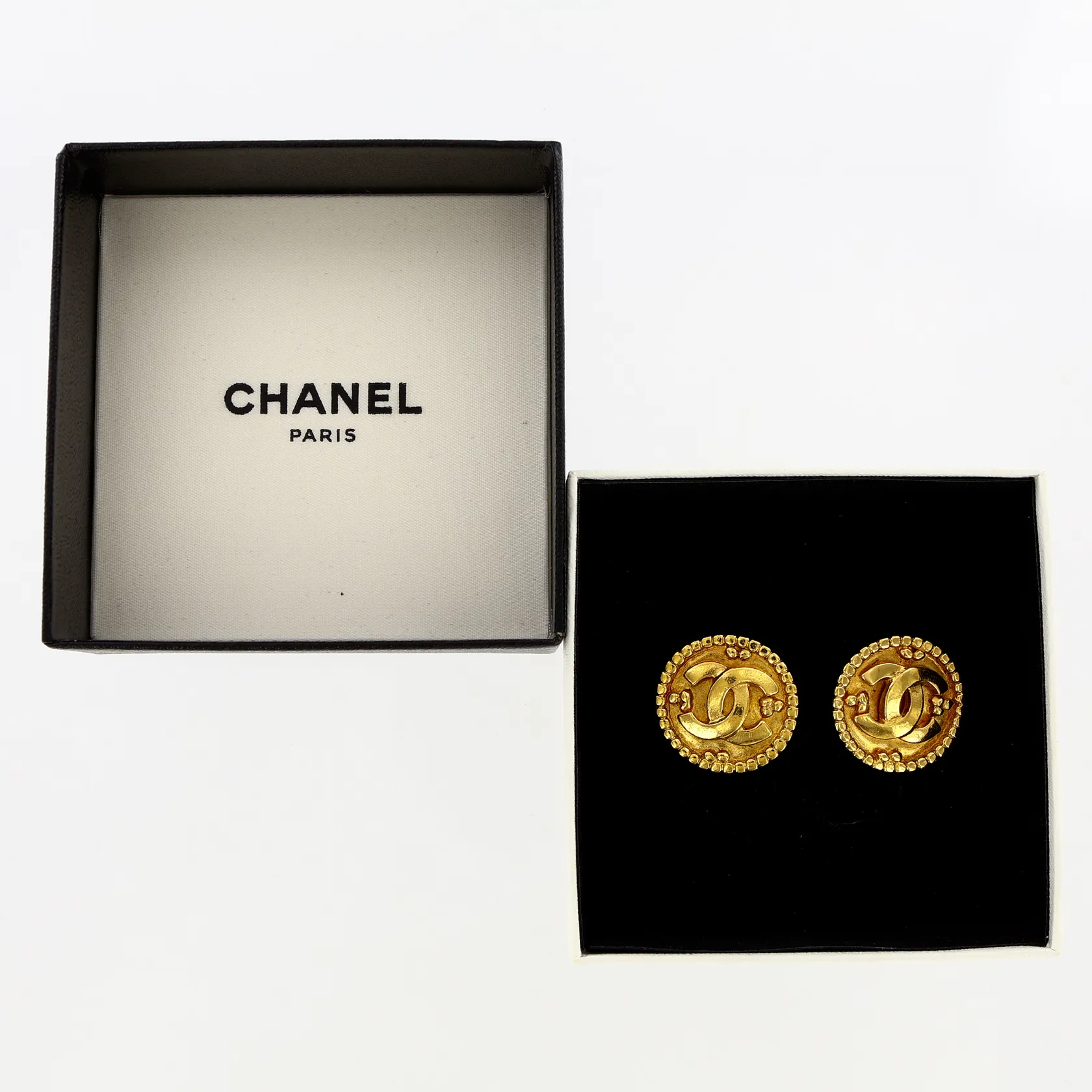 Ett par örhängen Chanel, gulmetall, Ø23mm, clips, 80/90-tal, märkta Chanel, 96 A, Made in France, med etui.