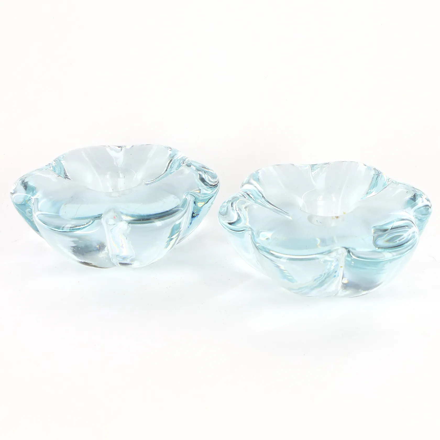 Ett par ljusstakar Orrefors, Ø ca 10,5cm, höjd 4cm, repiga bottnar.