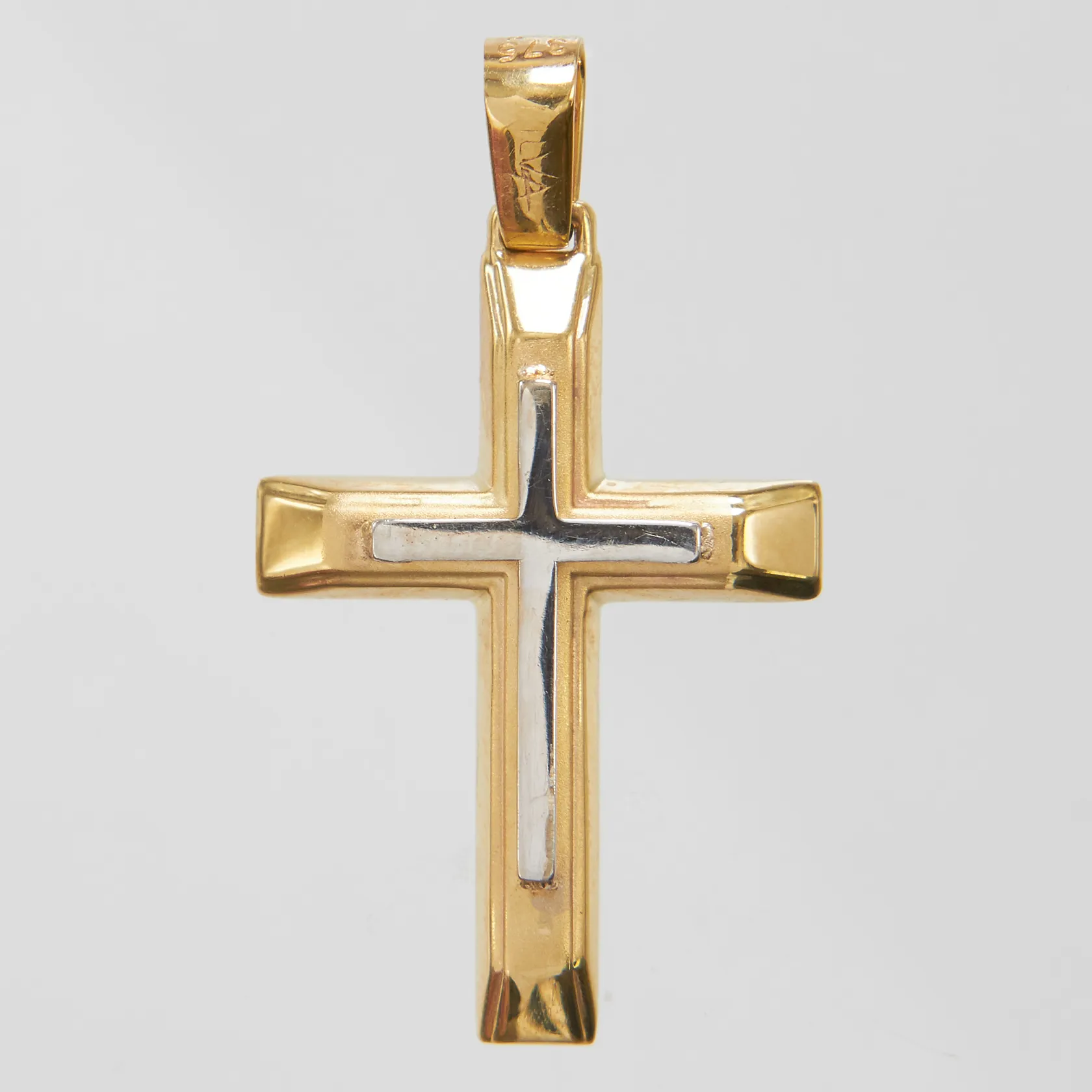 Hänge Kors, längd ca 32mm inkl ögla, bredd 4-18mm, 9K Vikt: 1,3 g.