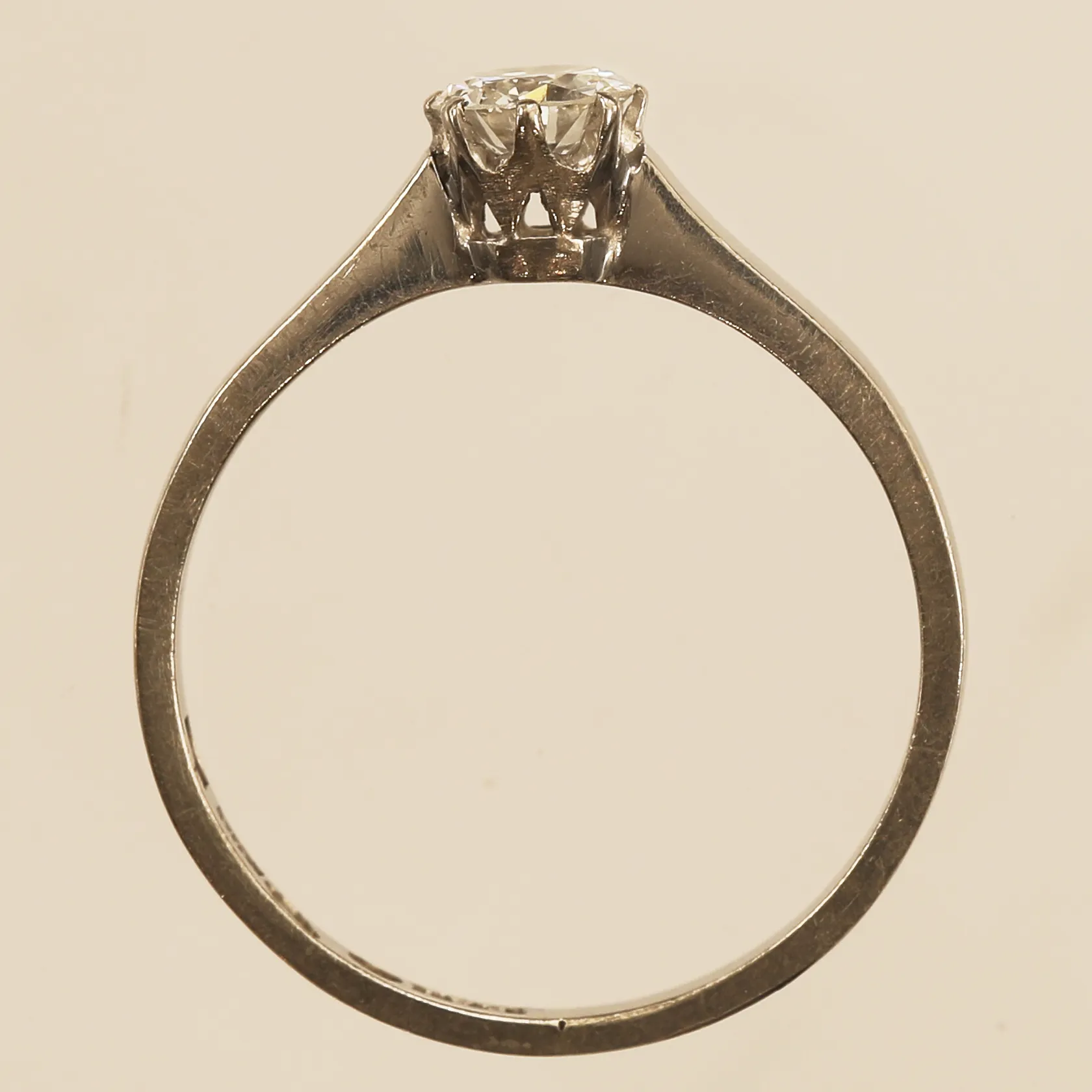 Ring med diamant 0,35ct, nagg, stl 17, bredd 5,3mm, Thomassons Guld-& Juvelfirma Erik, år 1955, vitguld, 18K Vikt: 2,3 g.