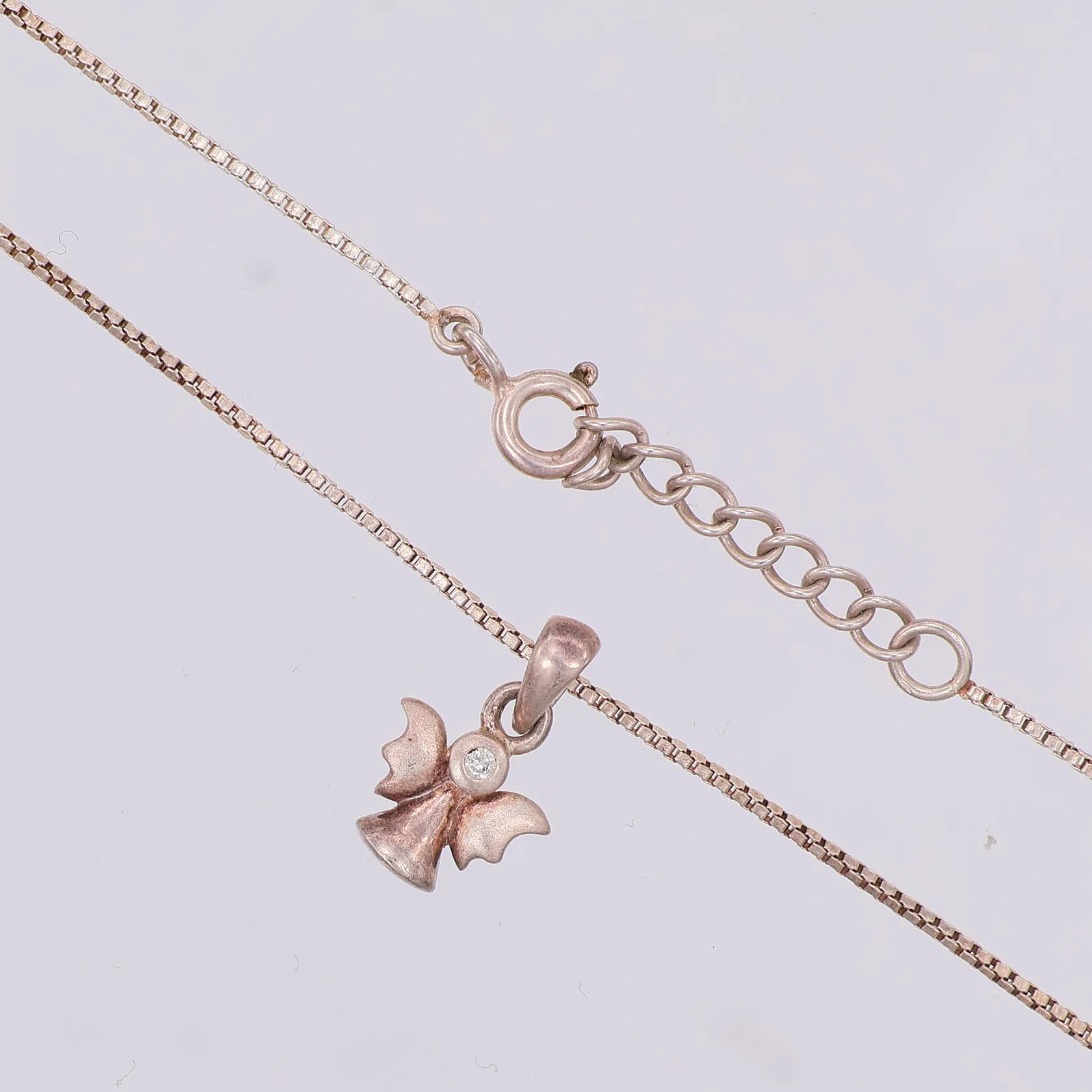 Kedja Venezia 38-40cm, bredd 1mm, hänge ängel med vit sten, 925/1000 silver Vikt: 2,5 g.