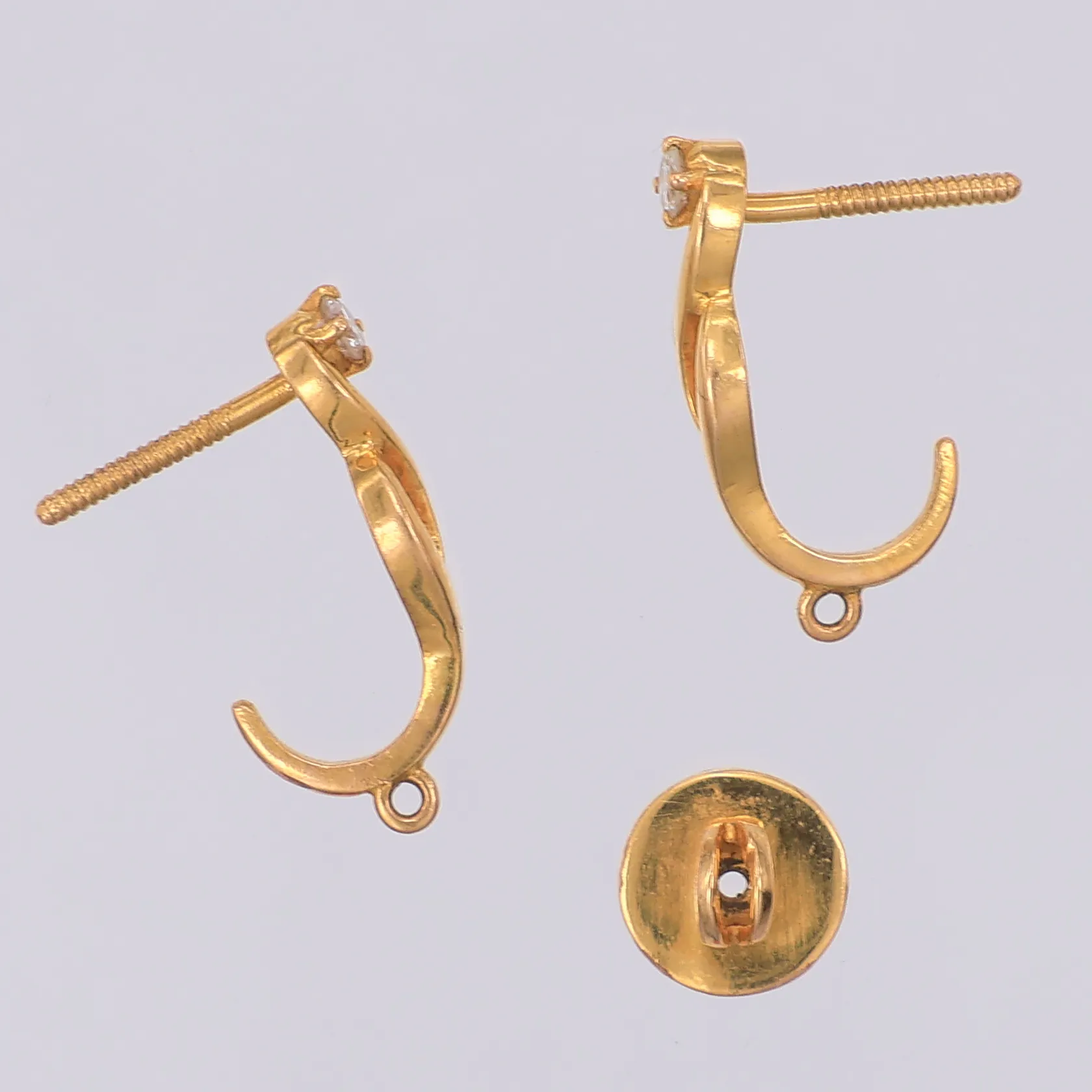 Ett par örhängen med vit sten, 15mm, defekta, en stopp saknas, 18K Vikt: 1,9 g.