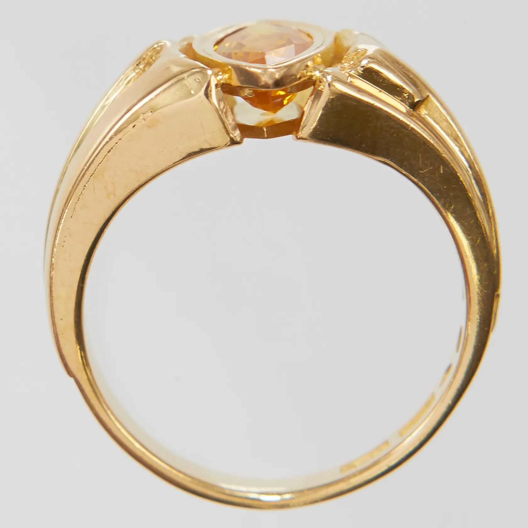 Ring med gul safir, stl16¾, bredd 3-12mm, Stenings Guldsmide & Gravyr Hb, 18K Vikt: 8,3 g.