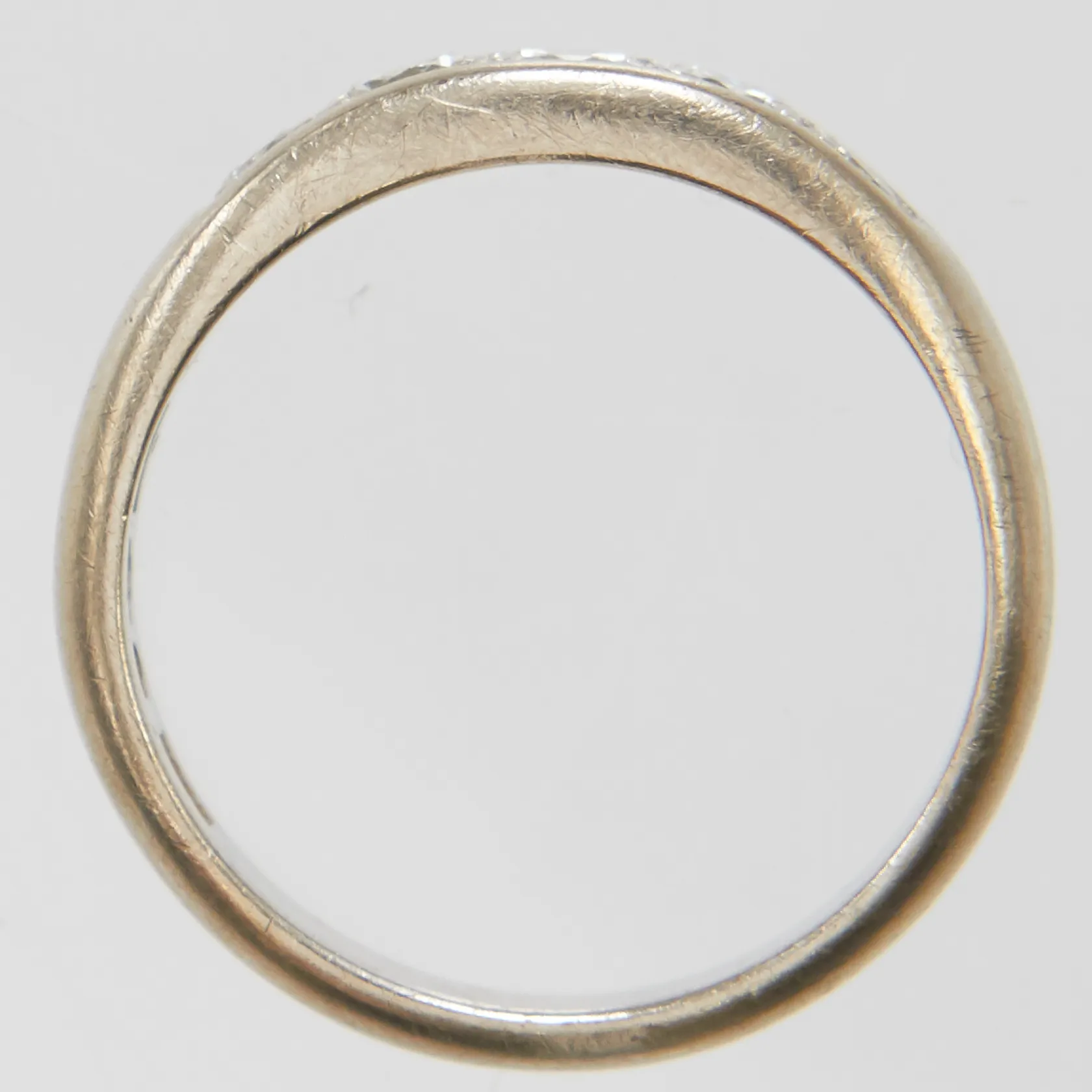 Ring med diamanter 2 x ca 0,05ct + 3 x ca 0,10ct, stl 15½, bredd 3-4,5mm, svenska stämplar, vitguld, behov av omrodiering, 18K Vikt: 3,4 g.