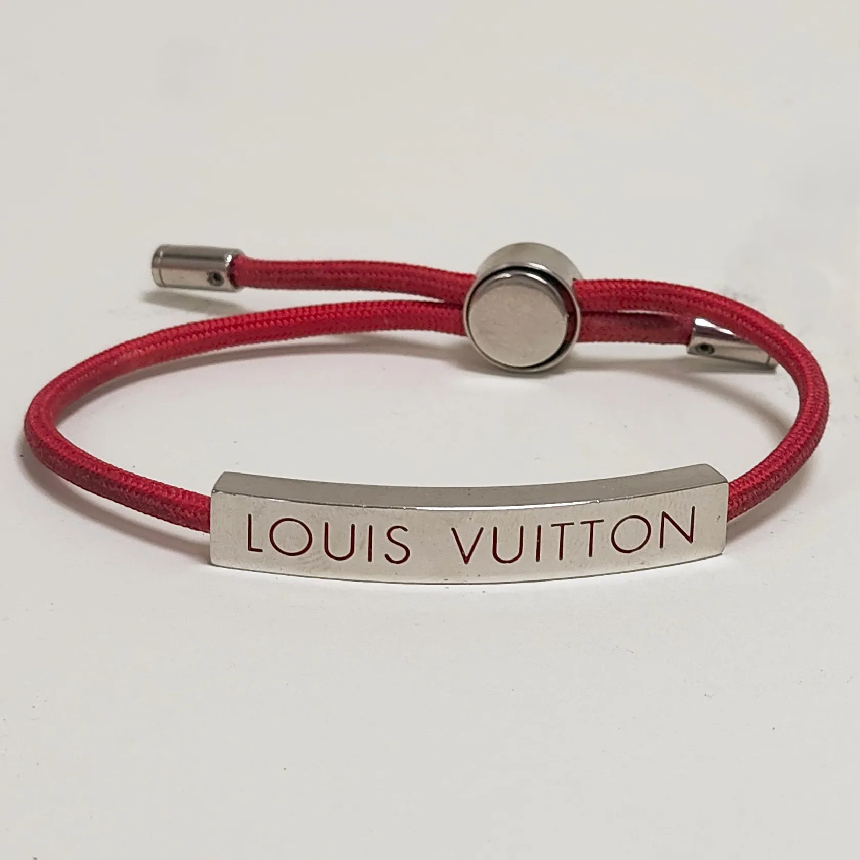 Armband Louis Vuitton Space bracelet, ref.nr: M67418, serienr: DP1109, justerbar storlek, rostfritt stål samt nylon, smutsigt band, repor samt nagg på metallen, dustbag samt box, inga övriga tillbehör