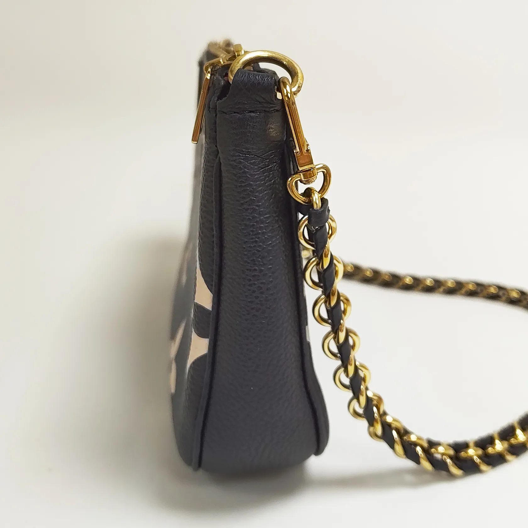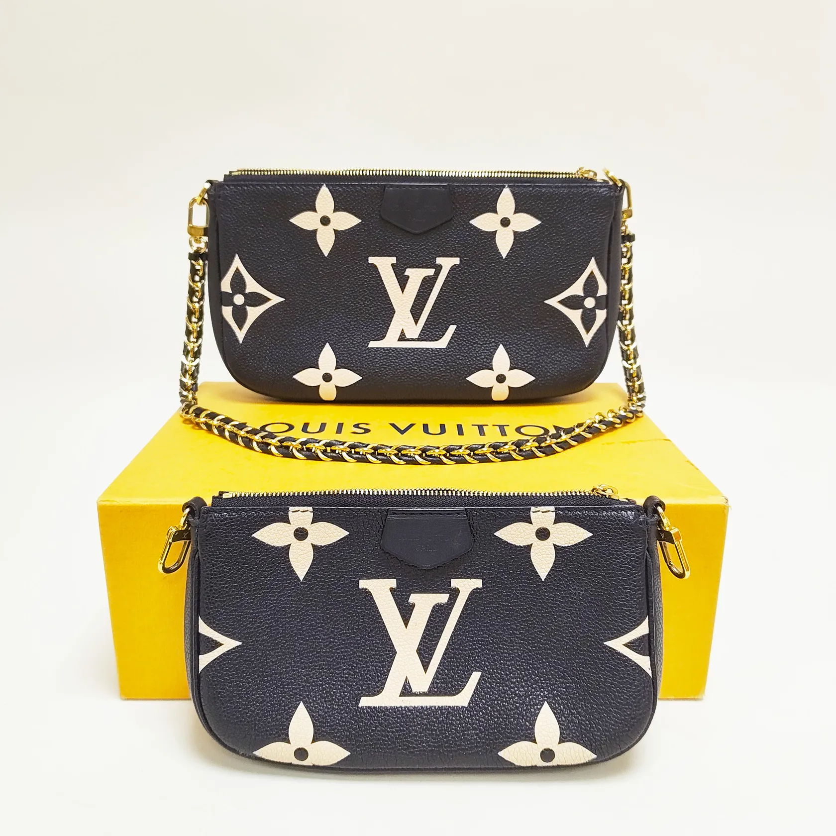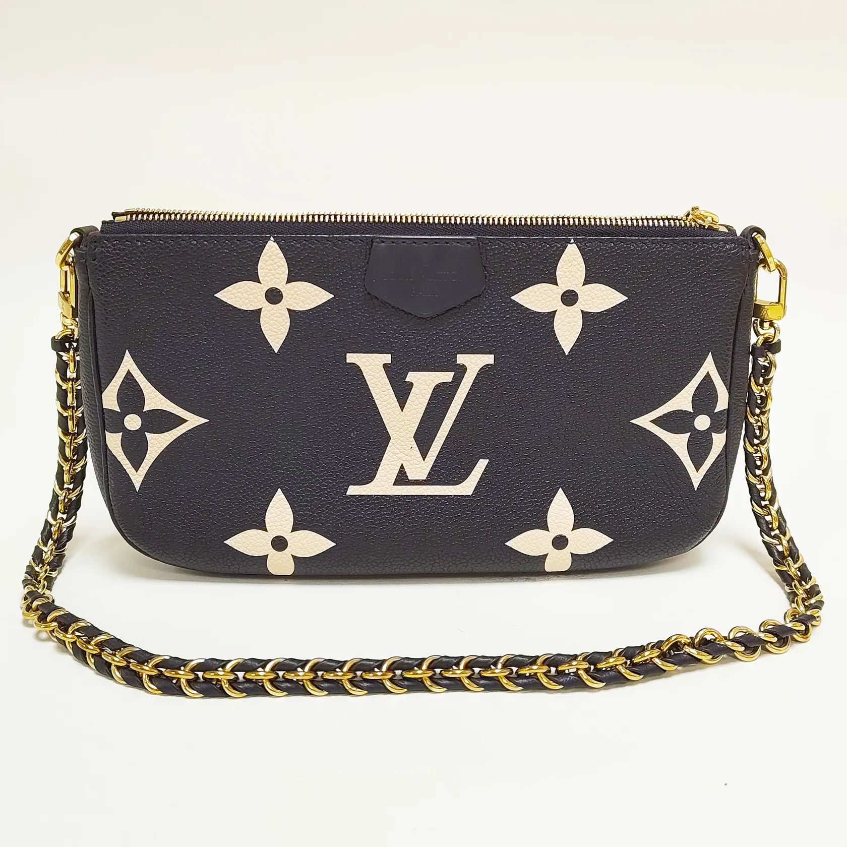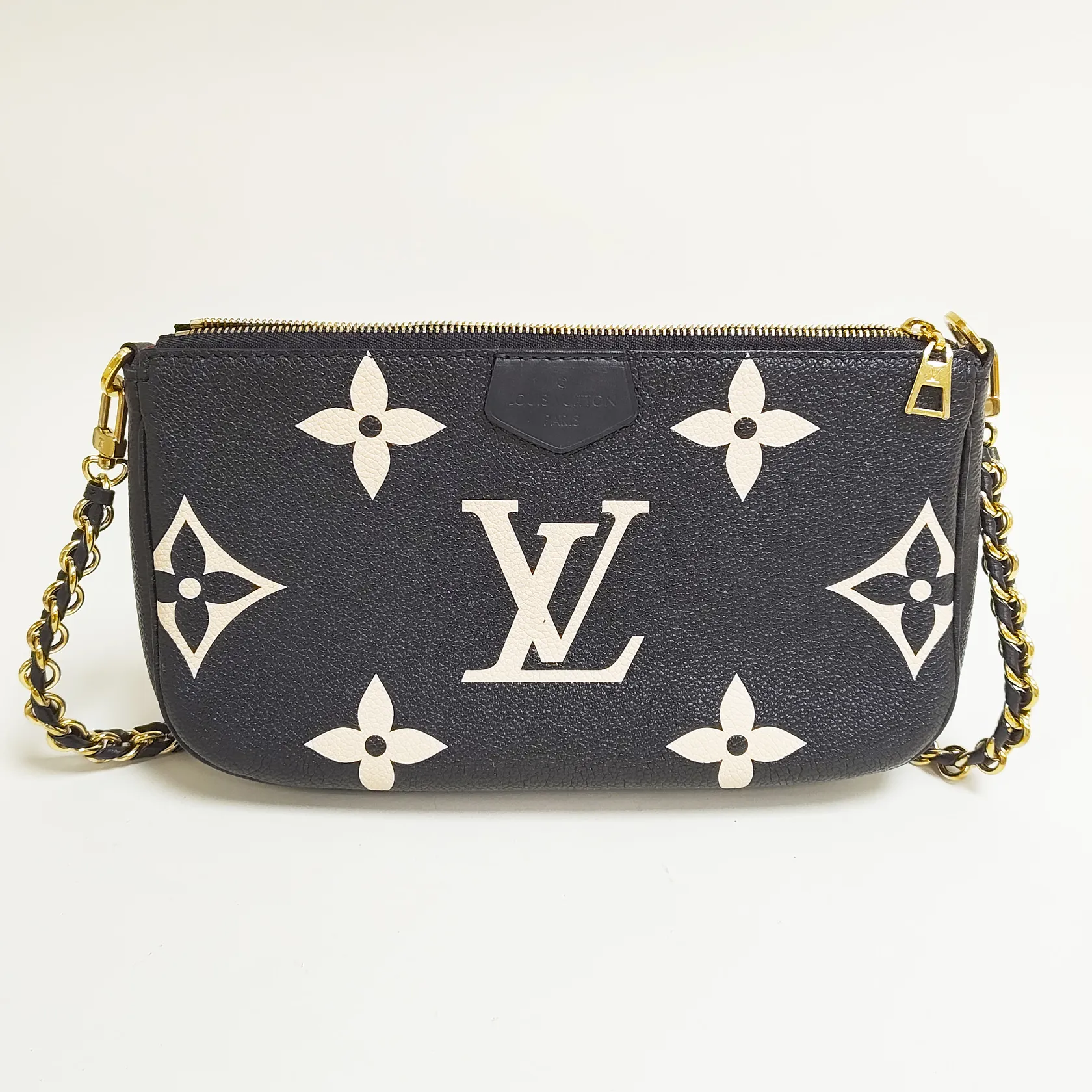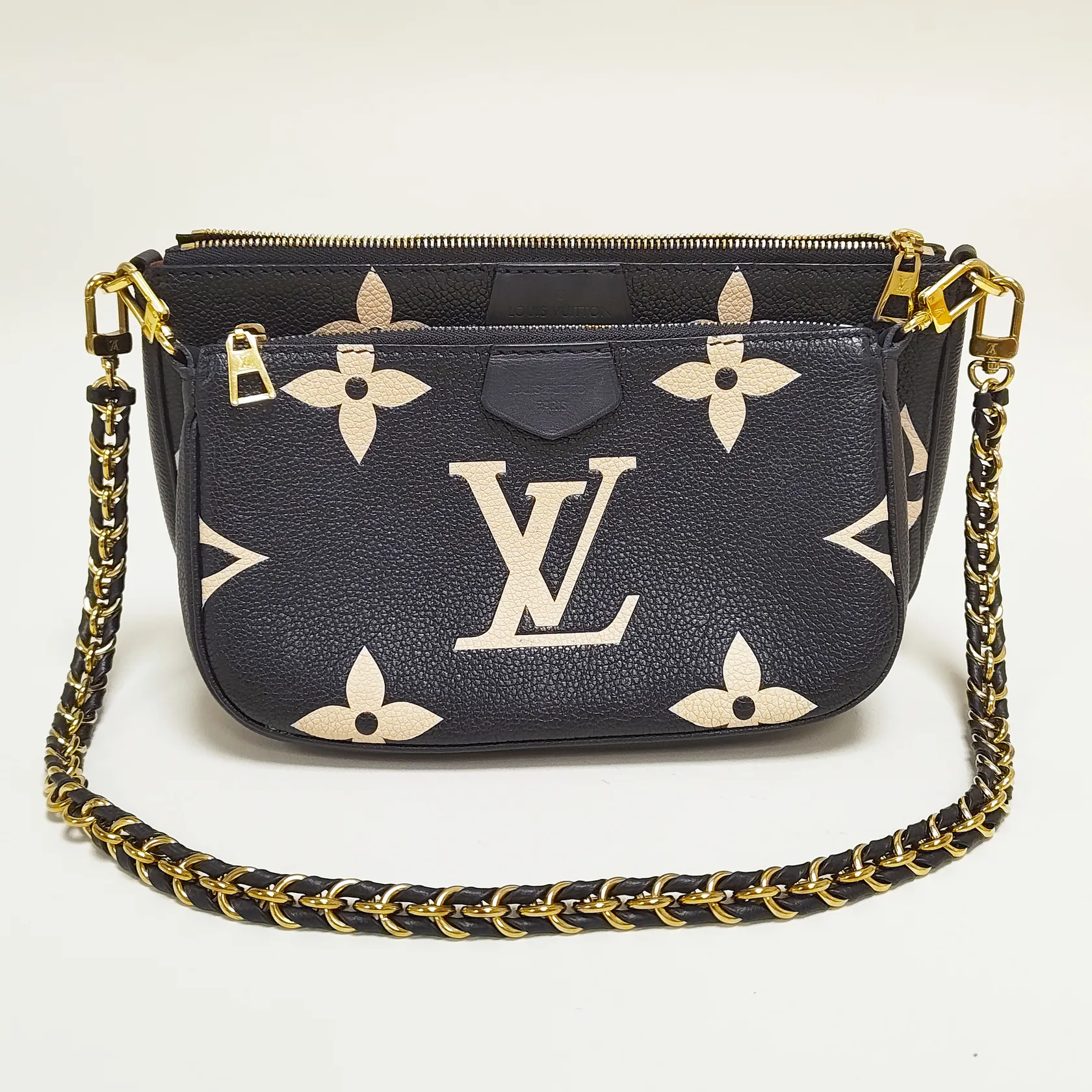 Väska Louis Vuitton Multi Pochette Accessoires Svart/beige, Monogram Empreinte-läder, M45777, datumkod SP0271 Frankrike 2021, mått 25x14.5x4,5cm, beslag i gulmetall, saknar axelrem, fläckar invändigt, fläckar samt slitage på ytterkartong