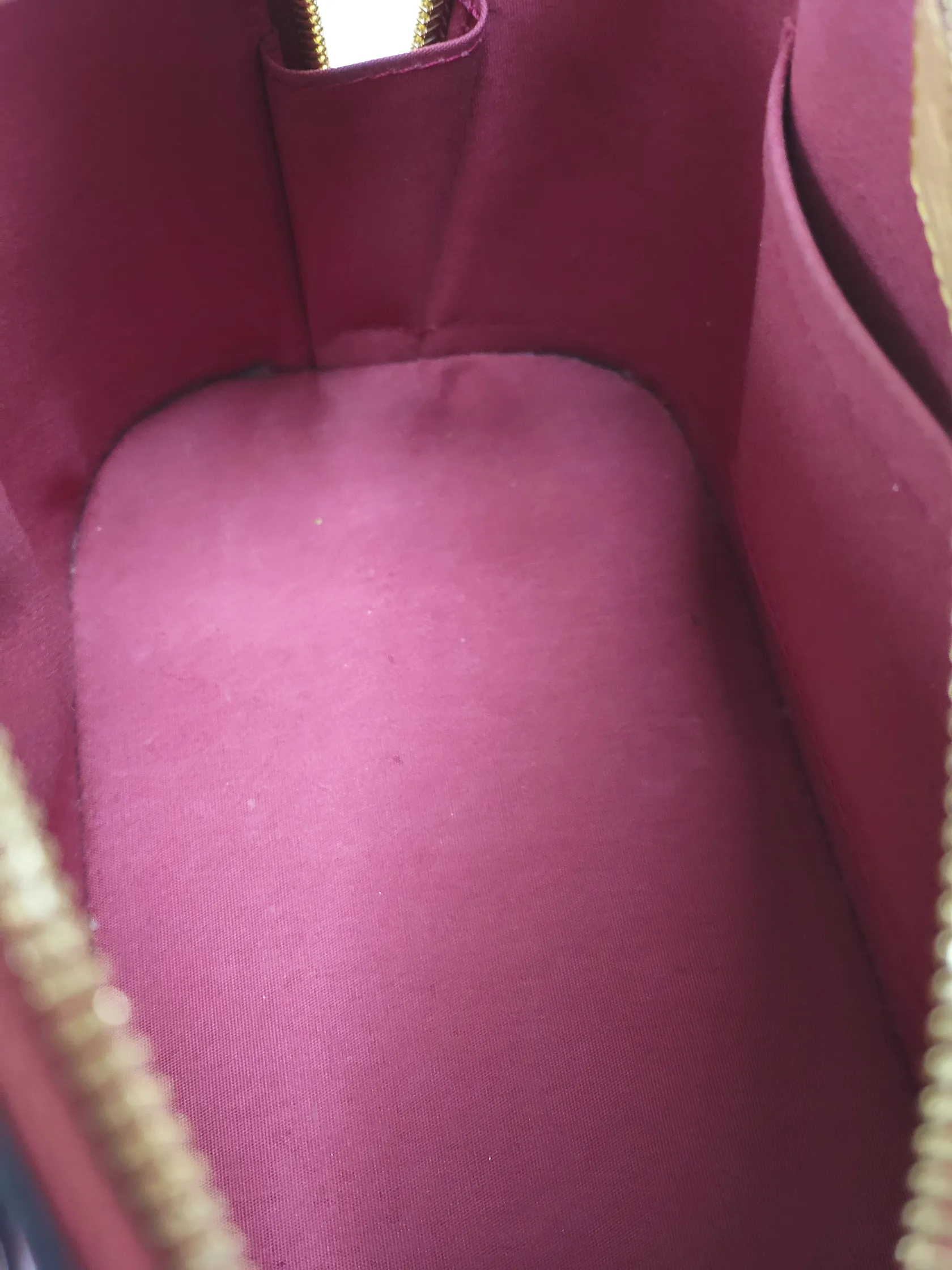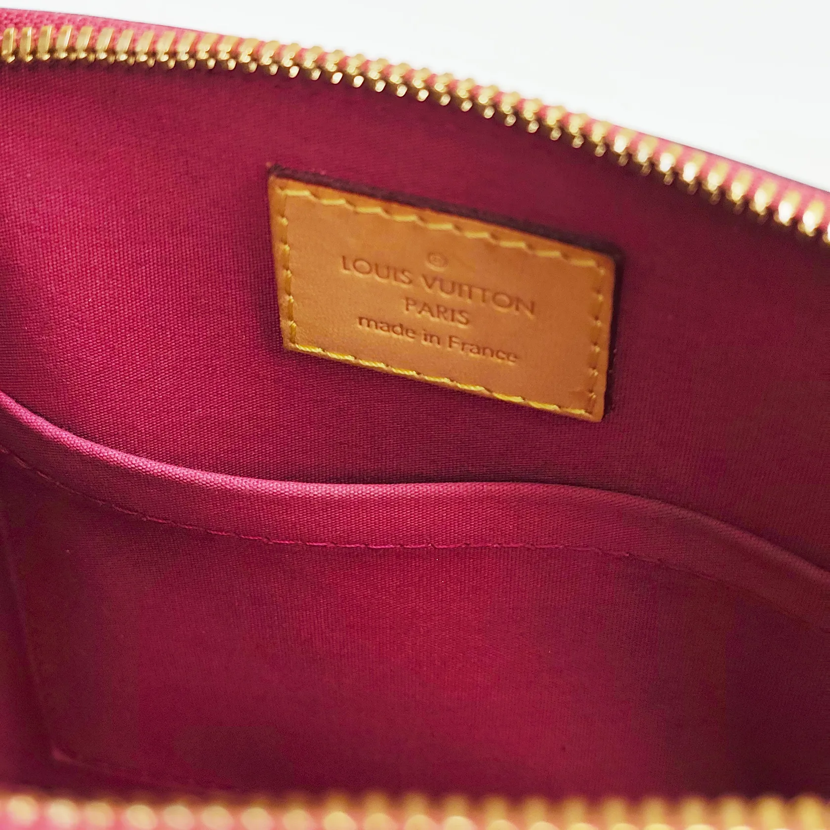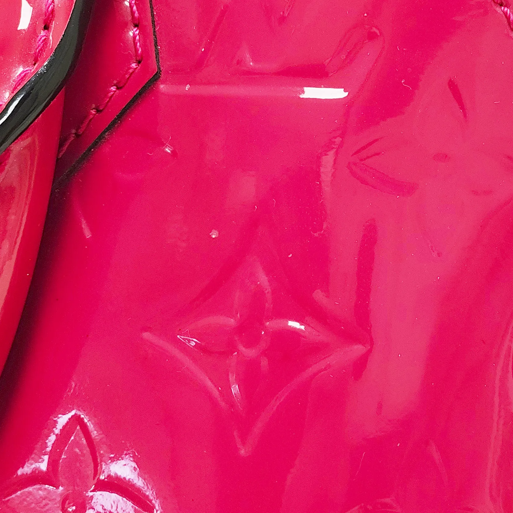 Väska Louis Vuitton Alma BB Monogram Vernis Rose Indien, ref.nr: M91771, 23,5x17,5x11,5cm, datumkod, MI2125, Frankrike 2015, lackläder, textilfoder, beslag i gulmetall, avtagbar axelrem, hänglås samt nycklar, skavmärken på lackläder, kvitto från Louis Vuitton Birger Jarlsgatan 2015 samt dustbag medföljer