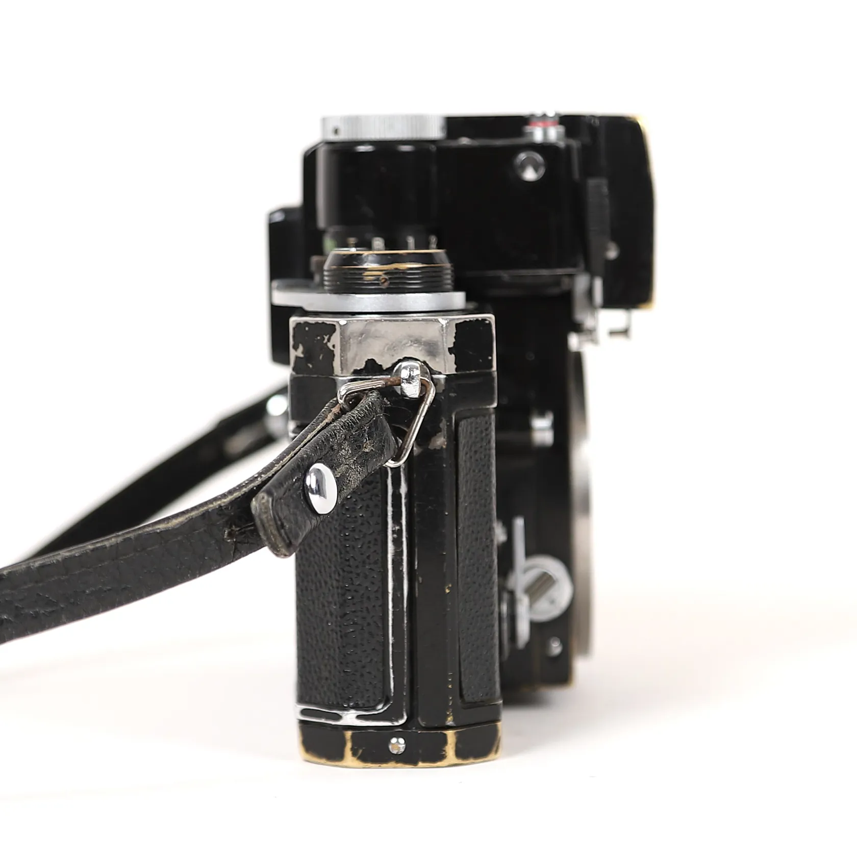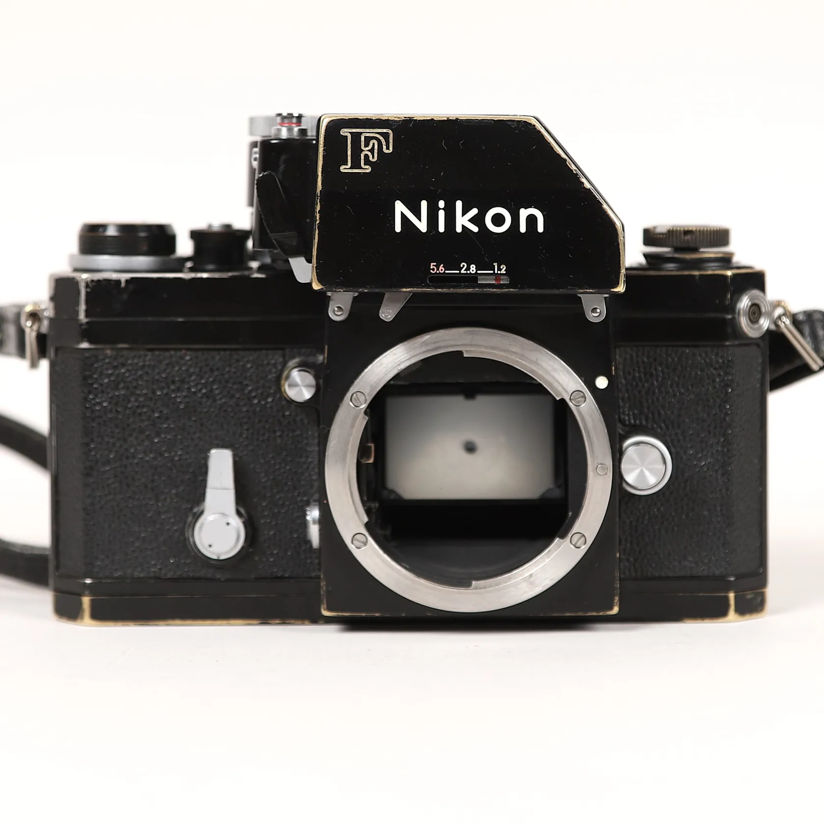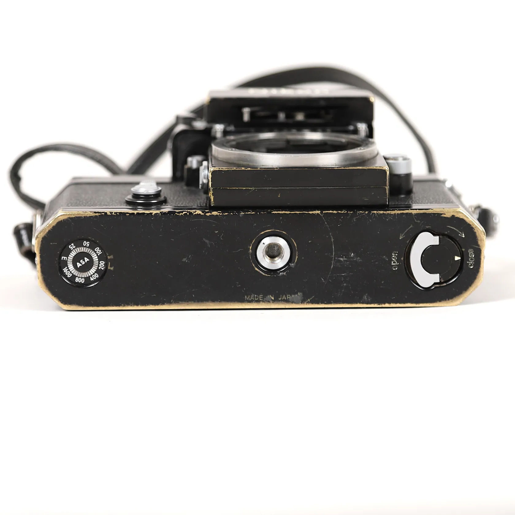 Kamera, Nikon F, med Photomic, svart, serienummer 7061071, Japan, 1960-tal, med objektiv Nikkor -hc 1:3.5/28, linsskydd fram och bak, motljusskydd, bruksslitage, seg i långa tider, ej funktionstestad