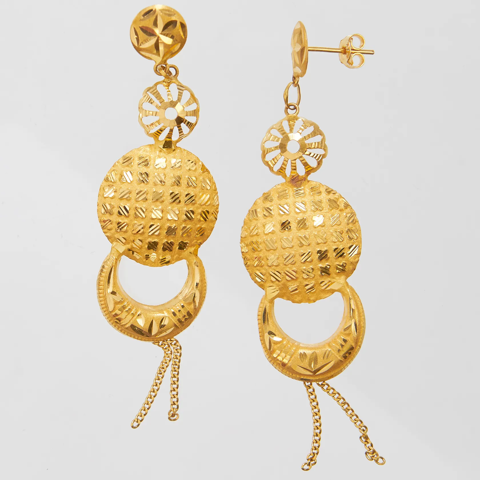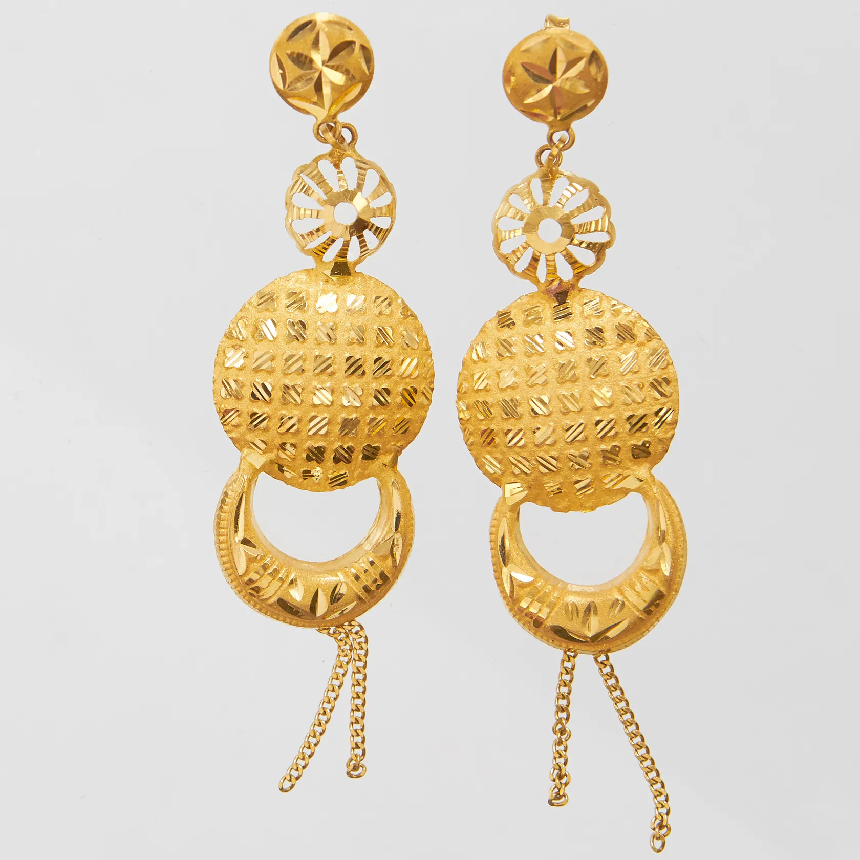 Ett par örhängen, längd ca 76mm, bredd 20mm, buckliga, 21K Vikt: 5,6 g.