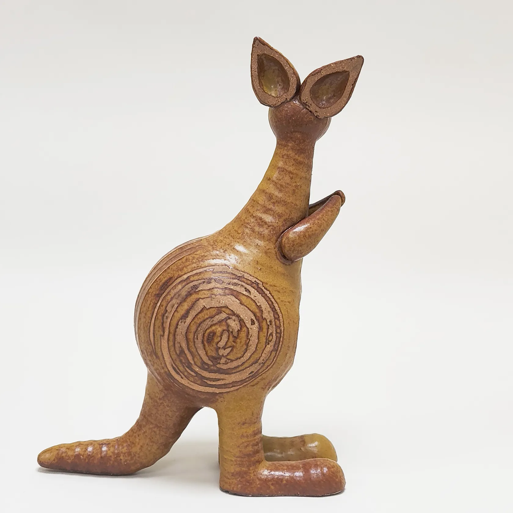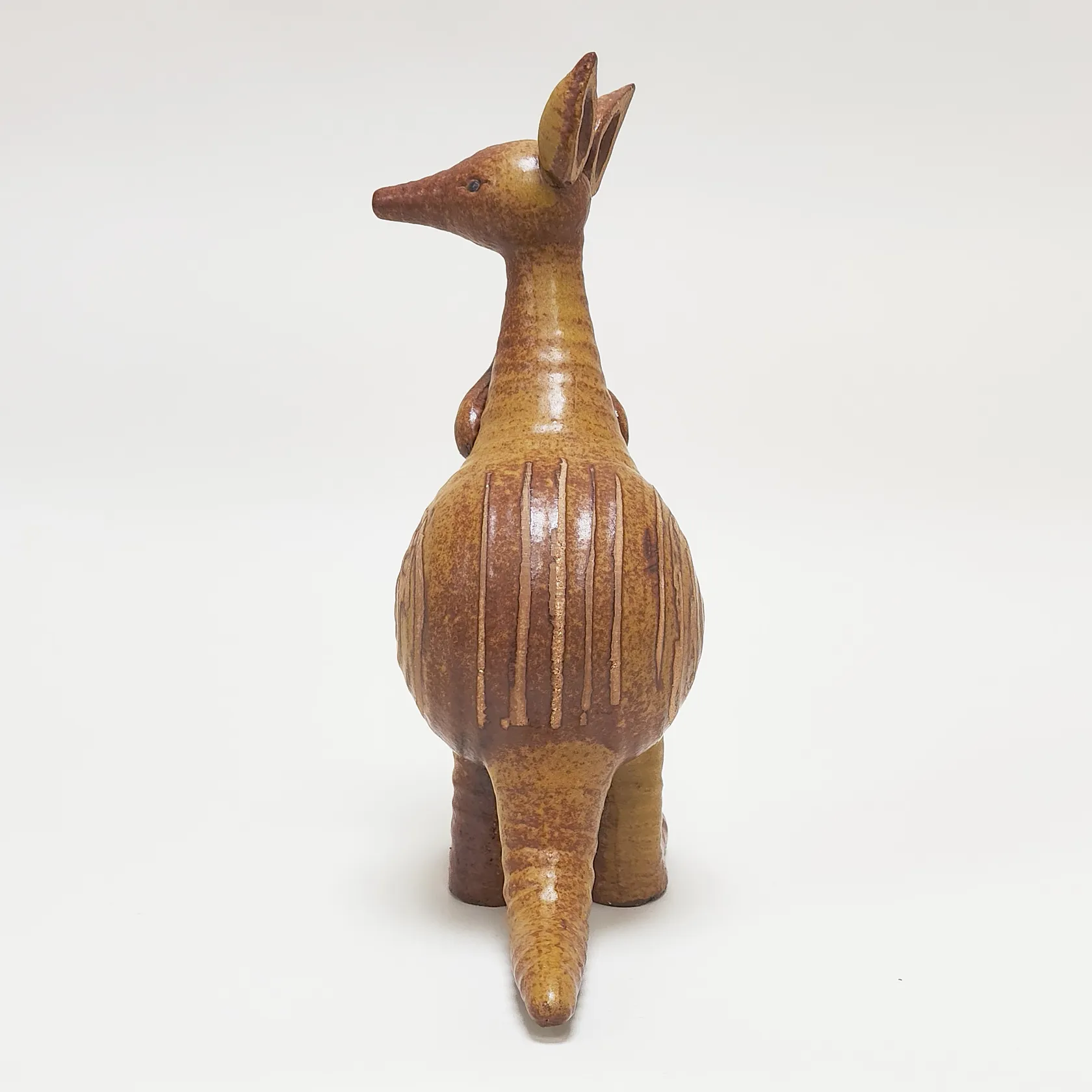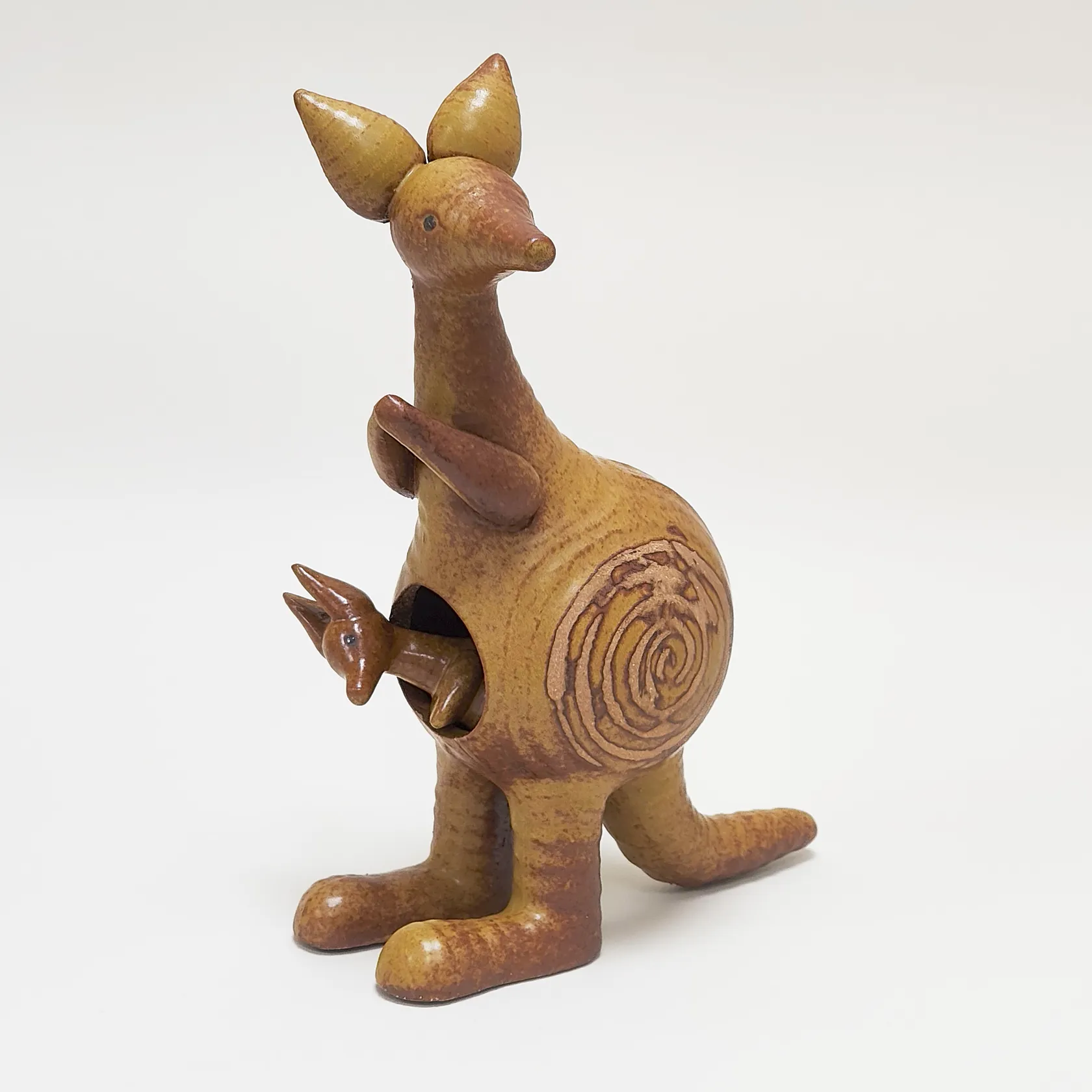 Figurin Känguru med unge ur serien Stora Zoo, Lisa Larson för Gustavsberg, höjd: 24 samt 9cm, glaserat stengods, stämpelmärkt, litet nagg samt mindre spricka runt öppningen på den stora kängurun