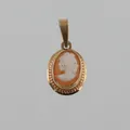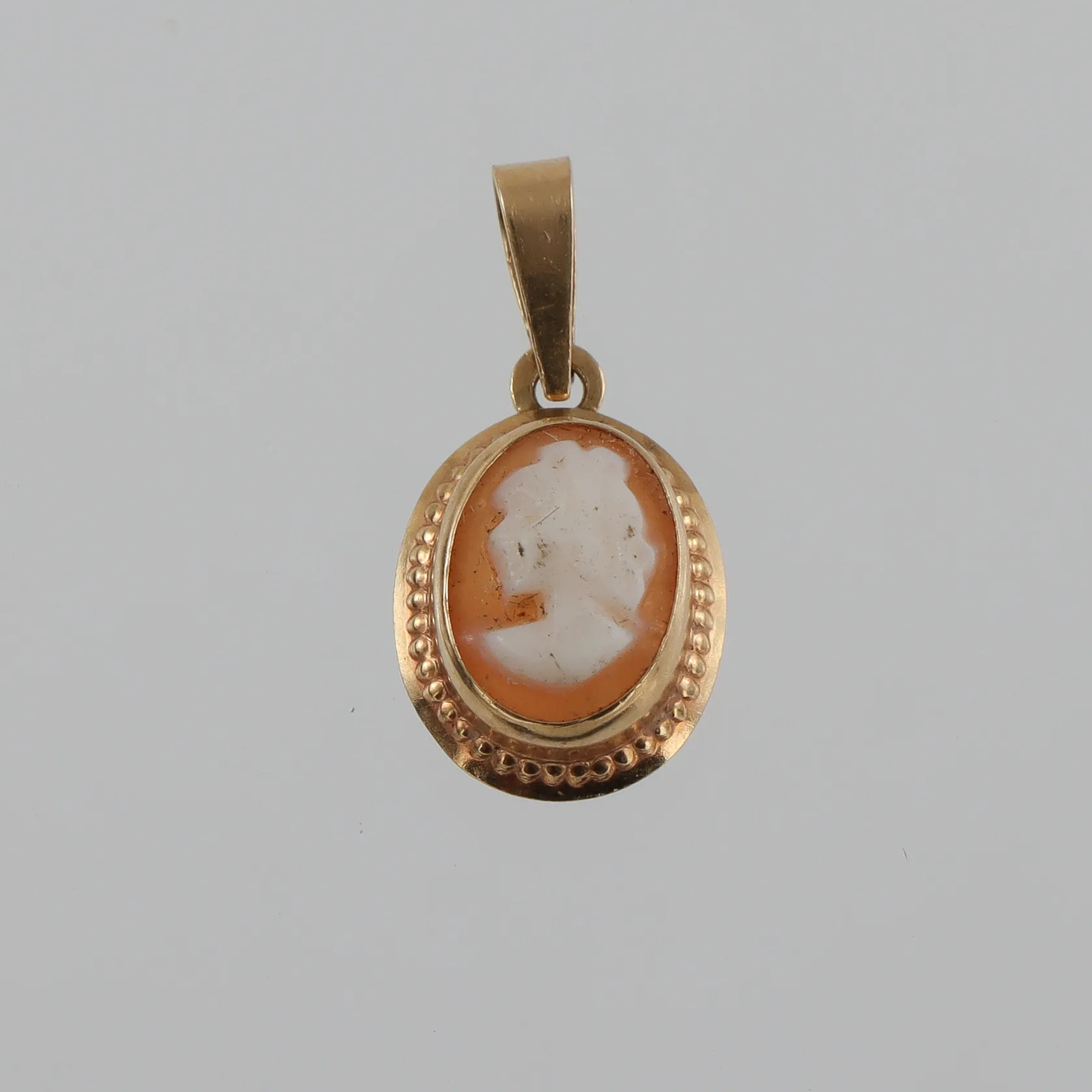 Hänge med camé 18k,Guldfynd AB,höjd med ögla 17 mm. Vikt: 0,5 g.