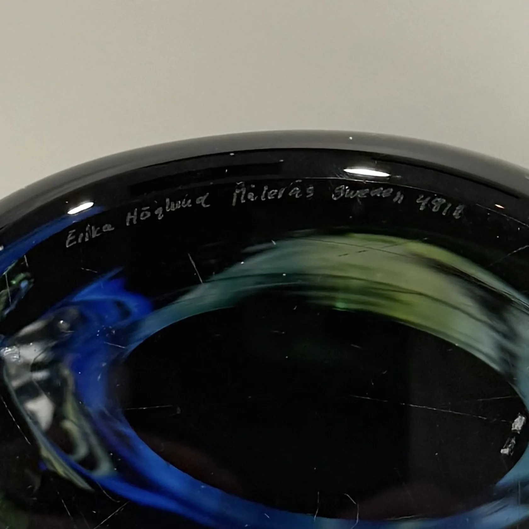 Vas, höjd 32cm, Målerås, design Erika Höglund, signerad och numrerad 4812, smärre repor Skickas med postpaket.