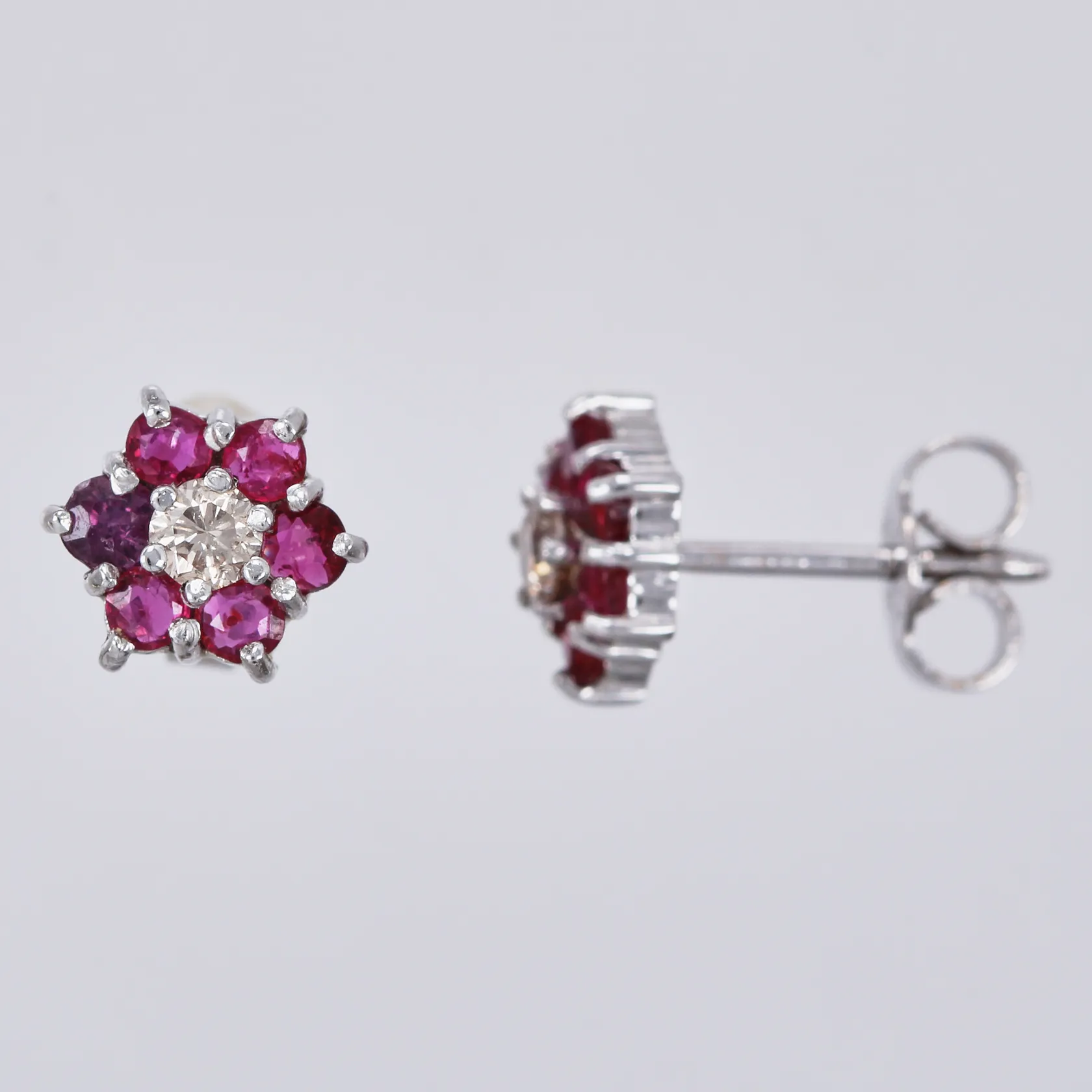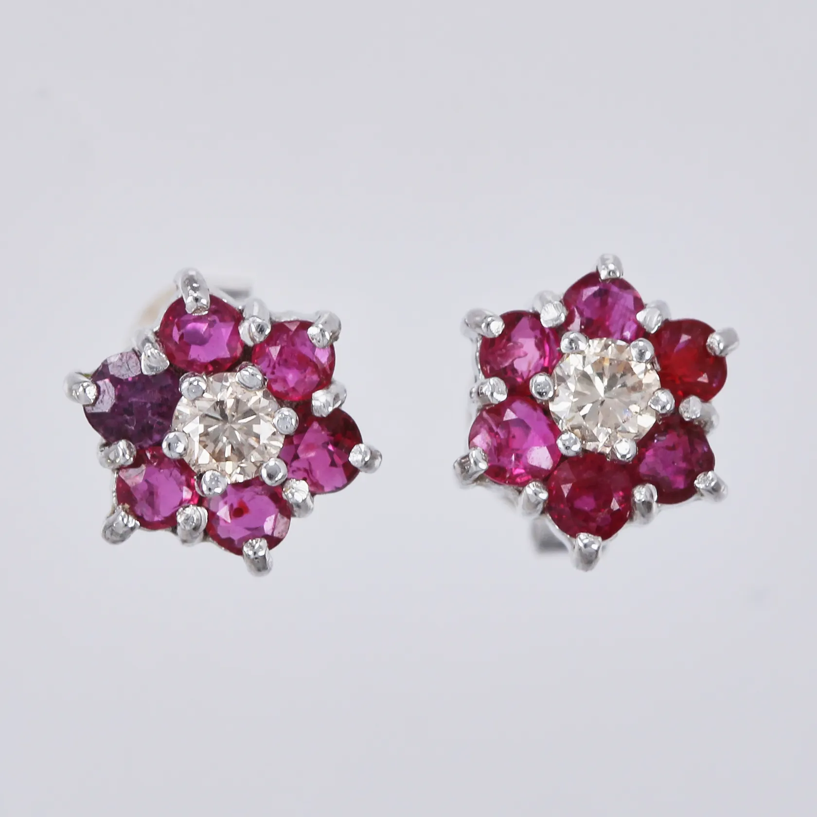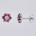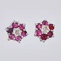 Ett par örhängen med diamanter ca 2x0,10ct & behandlade rubiner Ø ca 7mm nagg vitguld, 18K Vikt: 2,1 g.