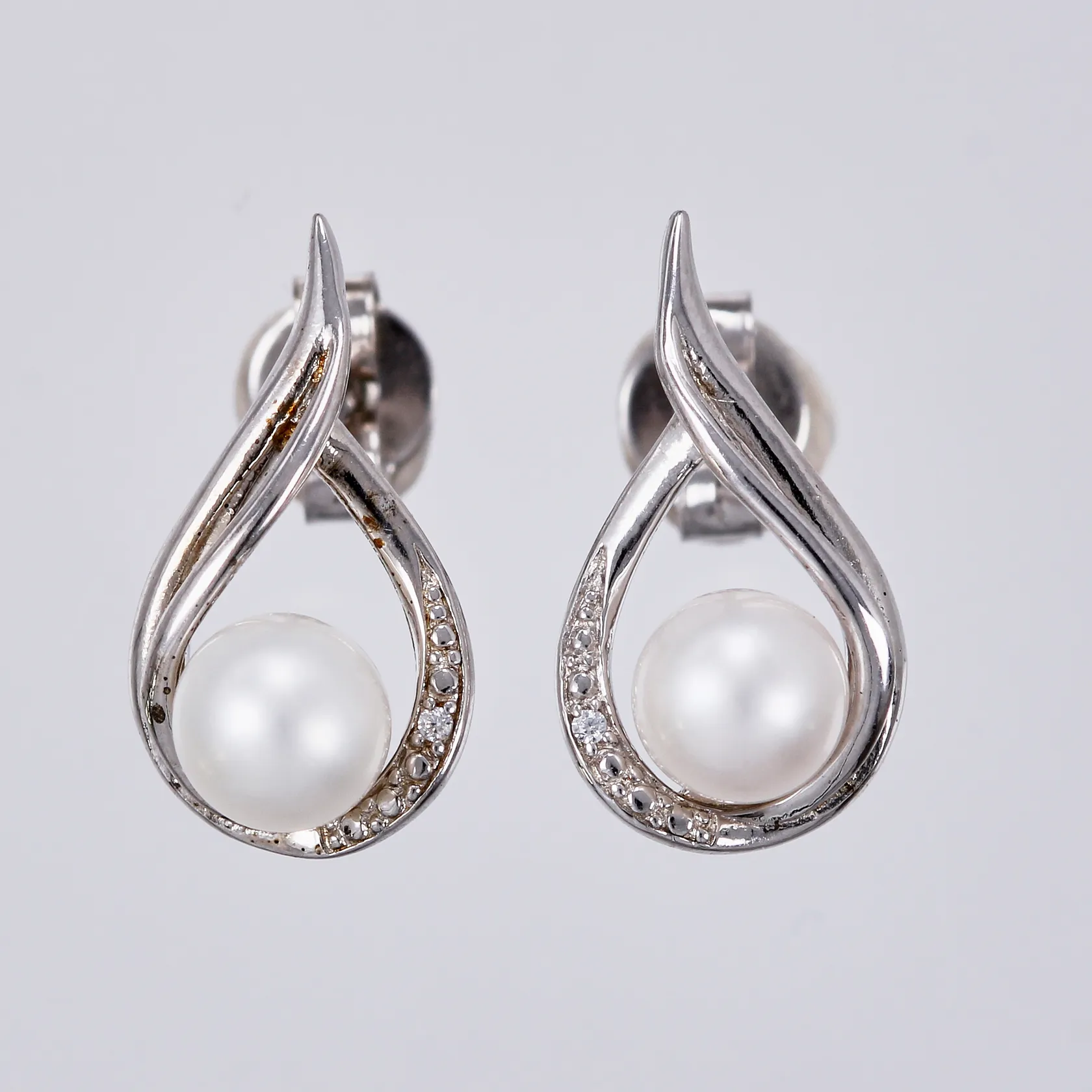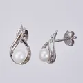 Ett par örhängen med pärlor och vita stenar, längd: ca 1,5cm, bredd: ca 8mm, silver 925/1000 Vikt: 1,6 g.