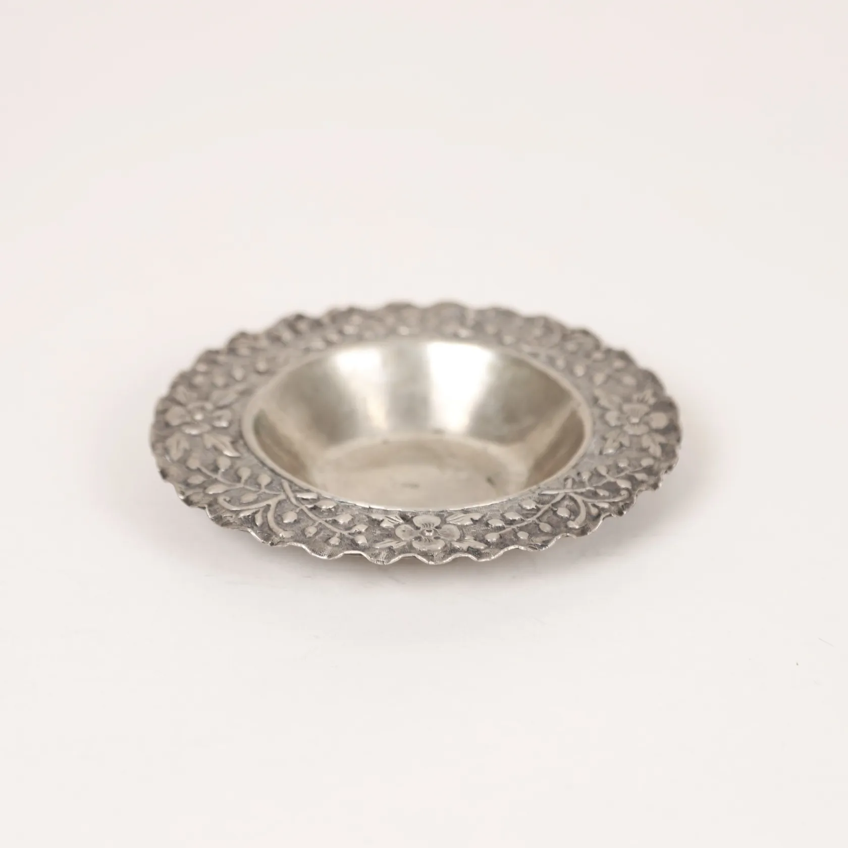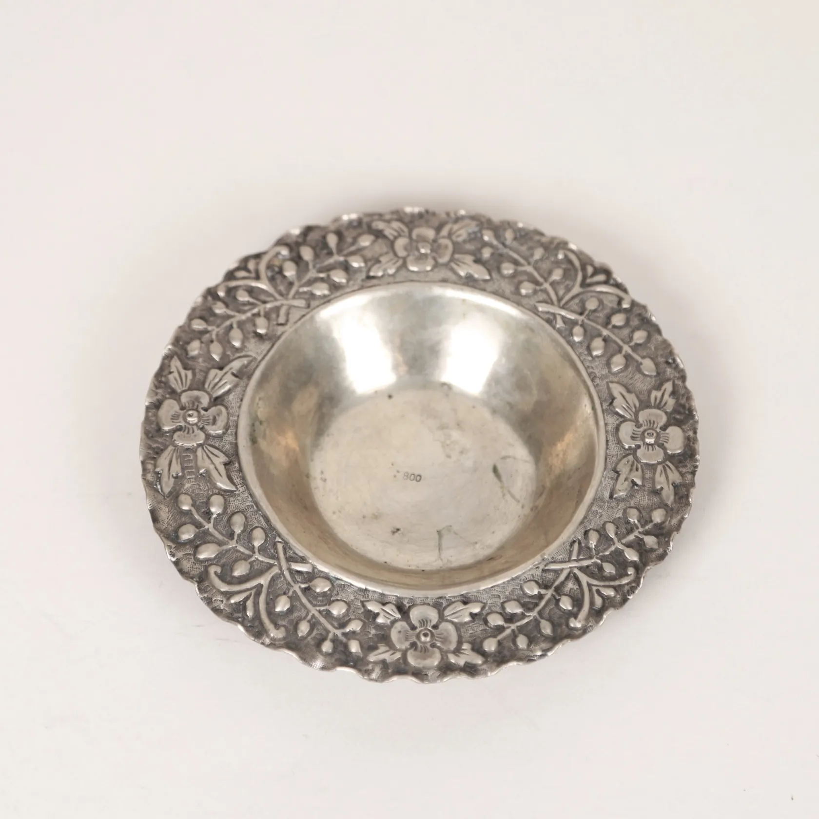 Skål med reliefdekor, Ø12cm, höjd: 2cm, gravyr, 800/1000 silver. Vikt: 79,3 g.