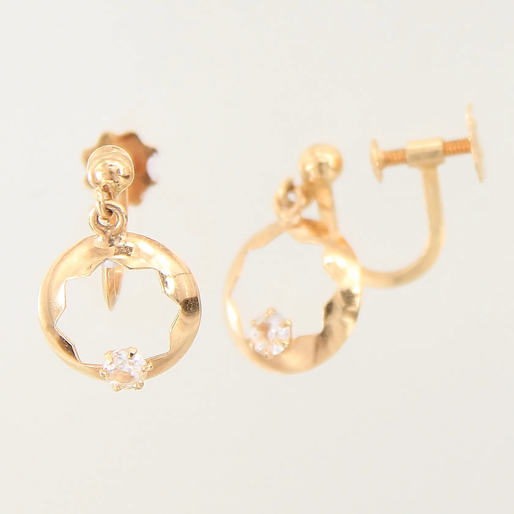 Ett par örhängen med vita stenar