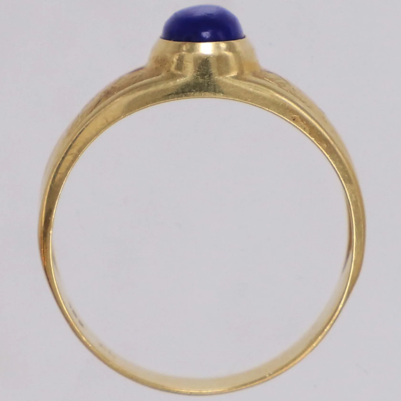 Ring med blå sten stl:17¾, bredd 4,2-8,7mm, 18K Vikt: 3 g.