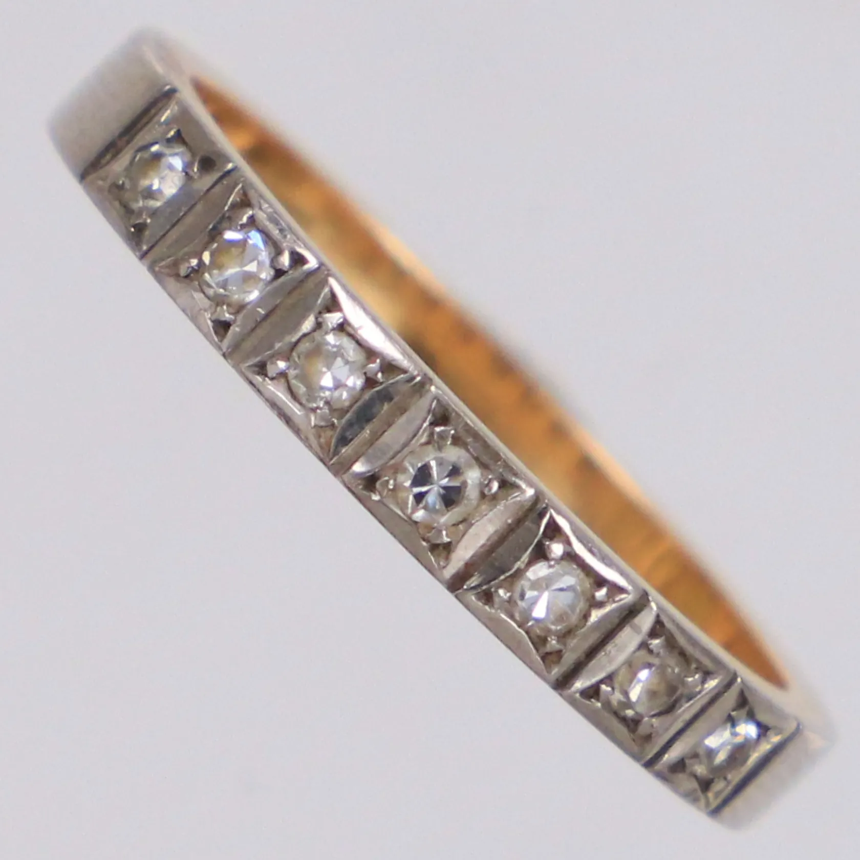 Ring med diamanter 7xca0,02ct åttkantslipade stl:17, bredd 2,7mm, Petterssons Eftr Juvelerar Ab, år 1966, tvåfärgad, 18K Vikt: 3,3 g.