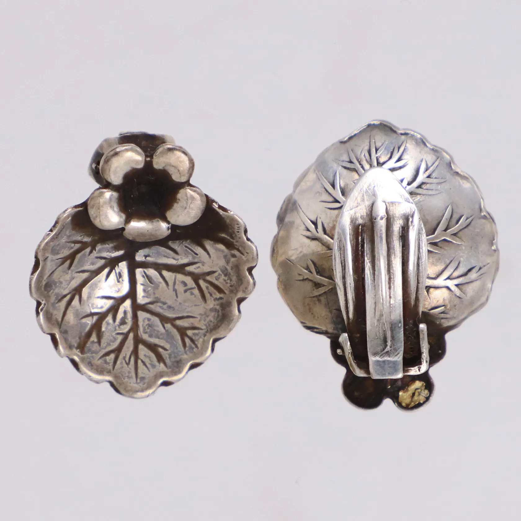 Ett par örhängen löv, längd ca 20mm, bredd ca 15mm, clips, silver 830/1000 Vikt: 6 g.