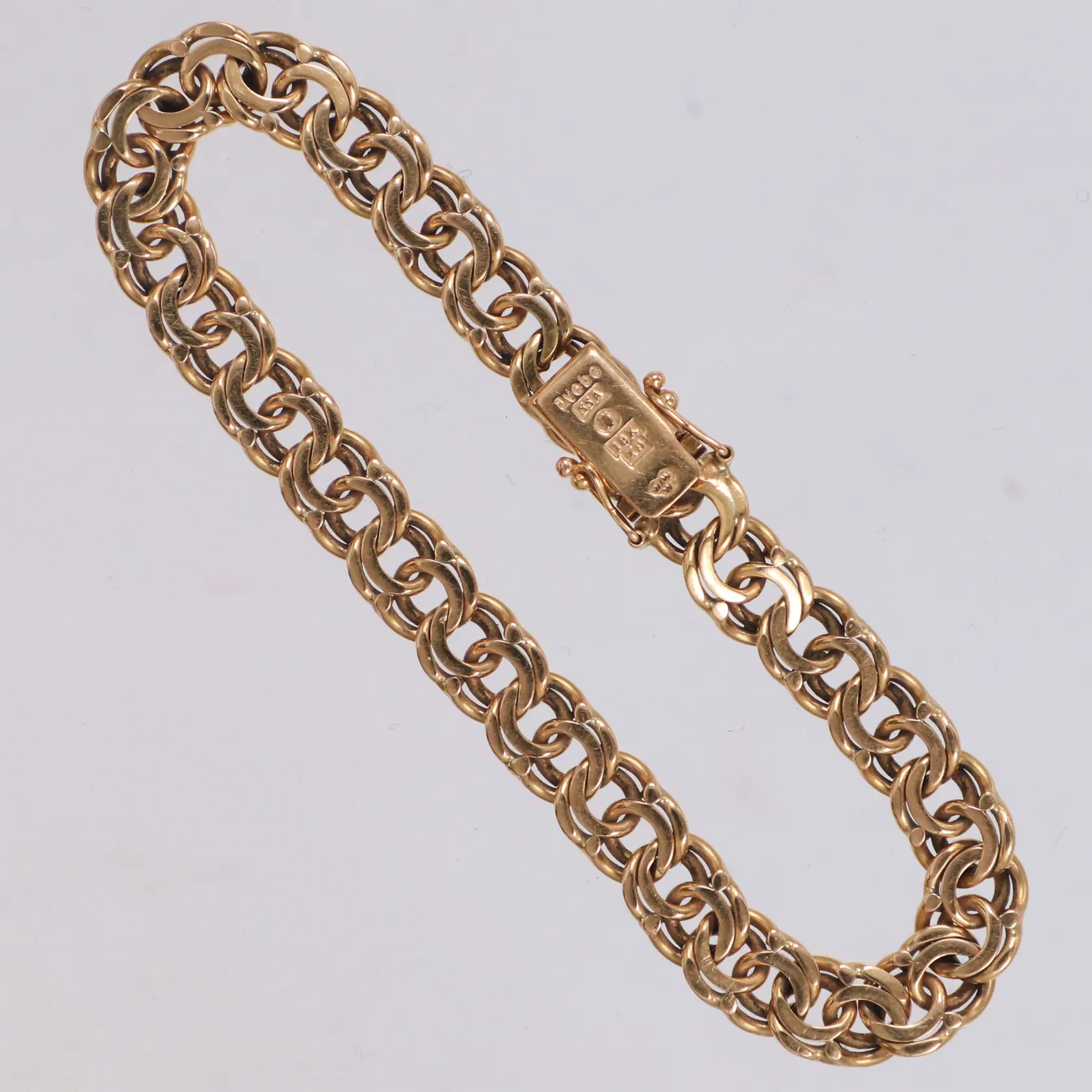 Armband Bismarck längd 18,5cm, bredd 7mm, Stockholms Stads Arbetsvårdsbyrå år 1972, 18K Vikt: 17,7 g.