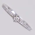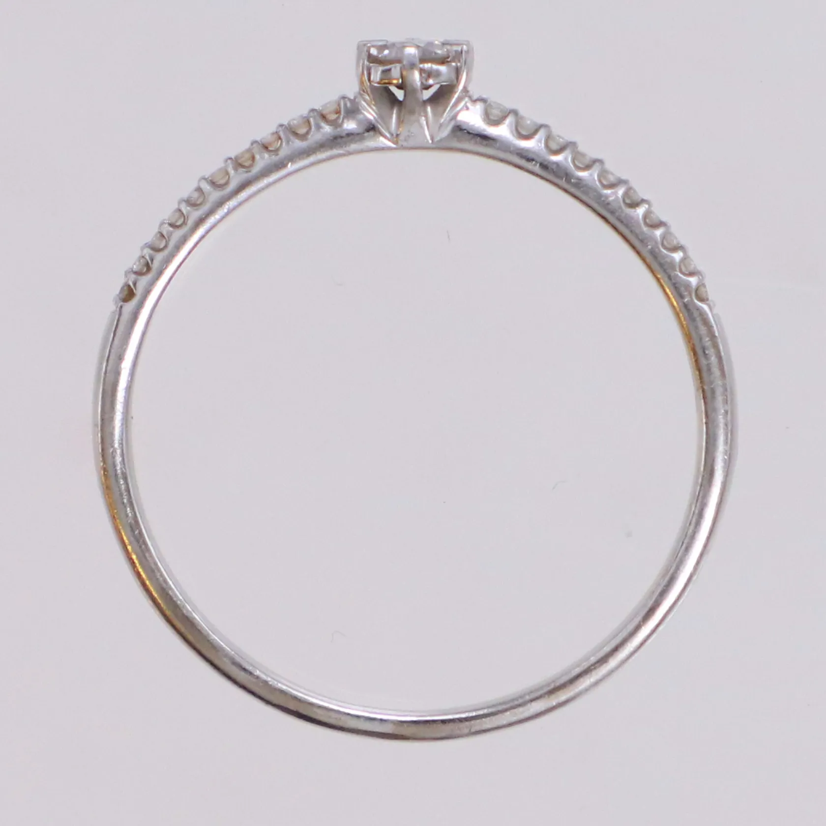 Ring med diamanter 1xca0,07ct 20xca0,005ct stl:19, bredd 1,5-4,4mm, vitguld, 18K Vikt: 2 g.