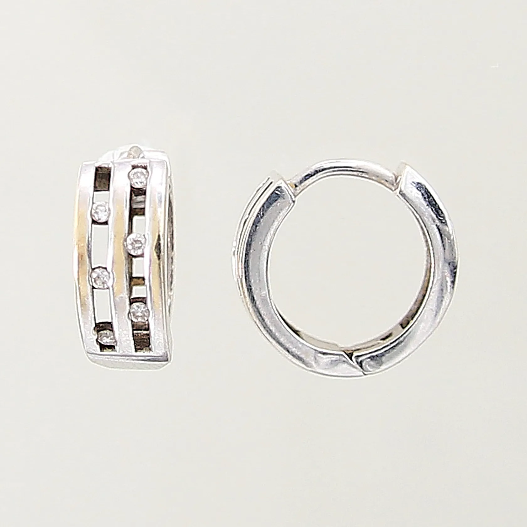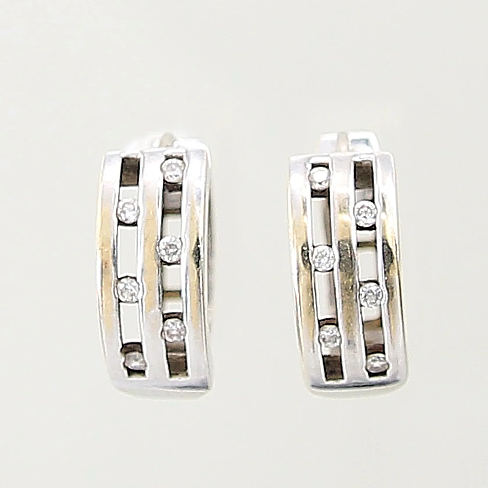 Ett par örhängen creoler med vita stenar samt genombruten dekor, Ø14mm, bredd 3,5-5,5mm, vitguld, 18K Vikt: 3,7 g.