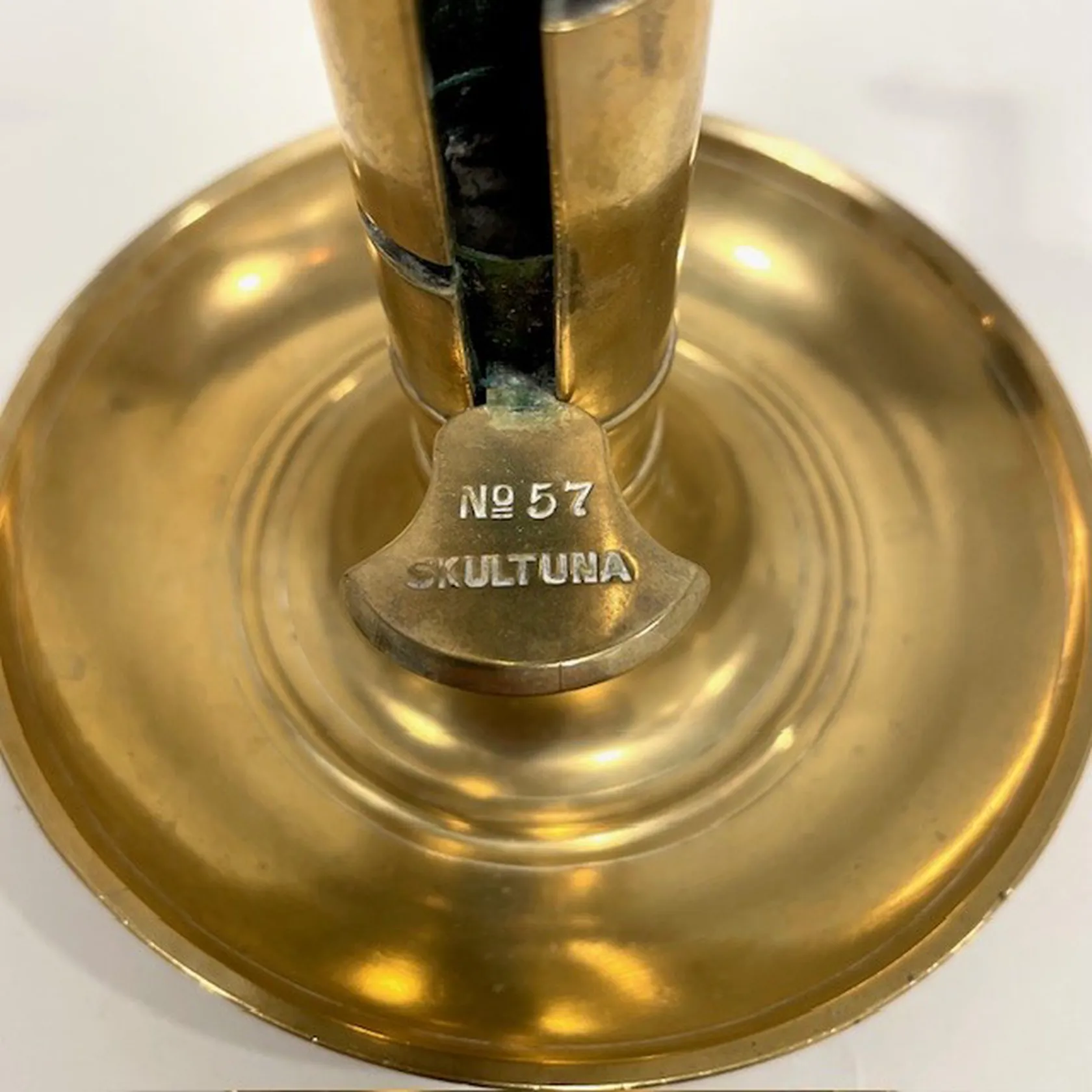 Kontorsljusstake Skultuna nr 57, höjd 15cm, mässing, stearinrester, bruksslitage