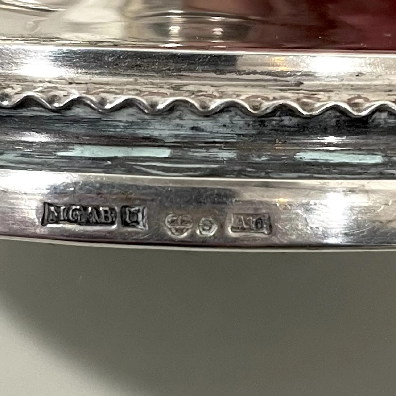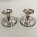 Ett par ljusstakar med mönstrad dekor, höjd 6,5cm, fylld botten, MGAB, silver 830/1000 Vikt: 225,2 g.