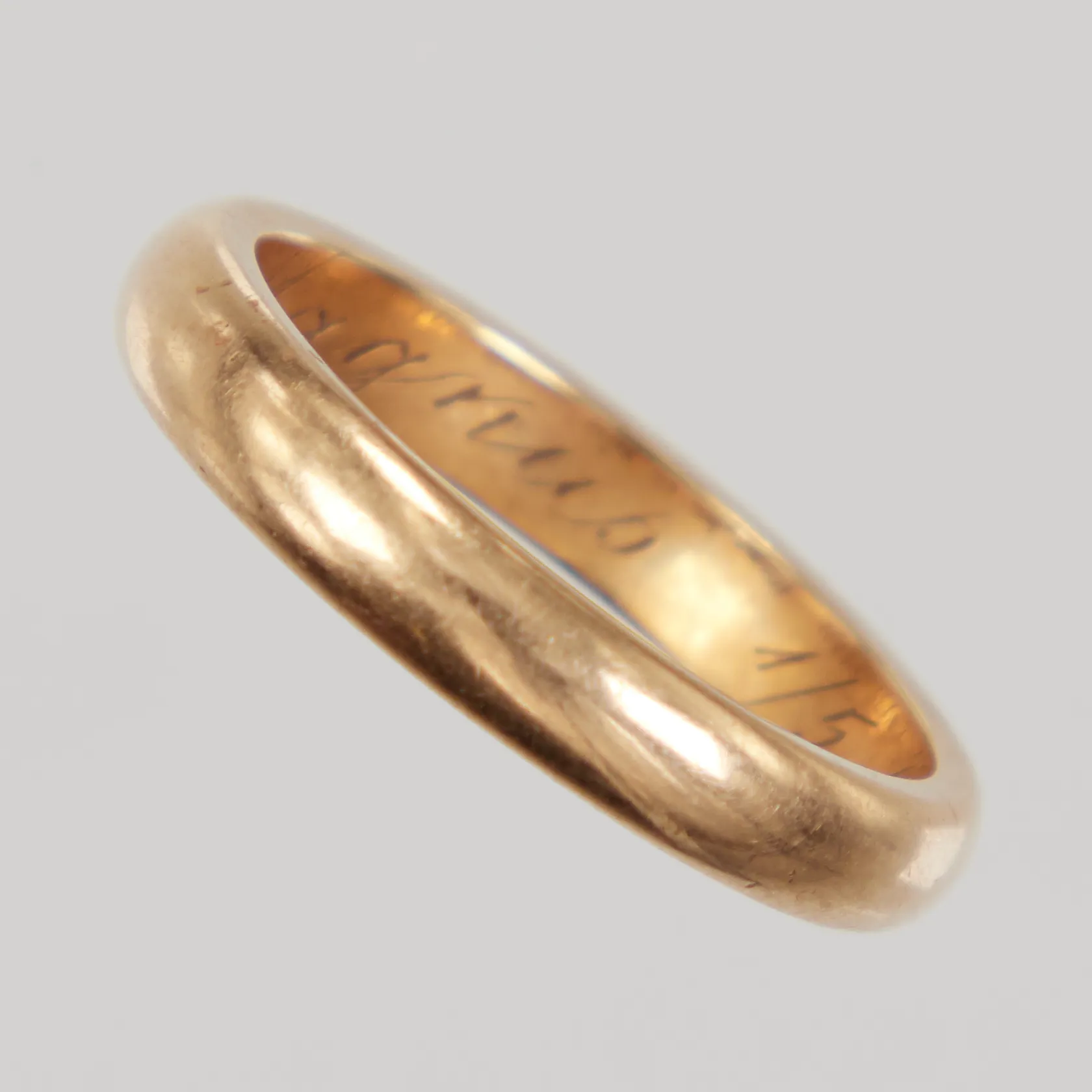 Ring slät Stl 18½, bredd 4mm, gravyr, 18K Vikt: 5,8 g.