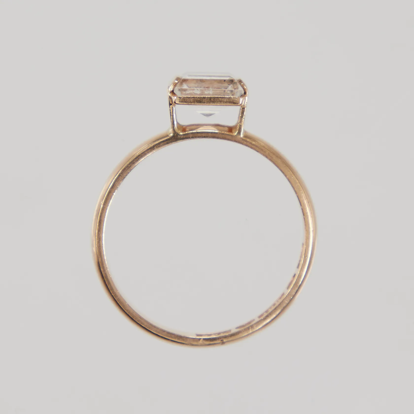 Ring med vit sten stl 19¾, bredd 3-7mm, flera nagg, gravyr, 18K, Vikt: 4,7 g.