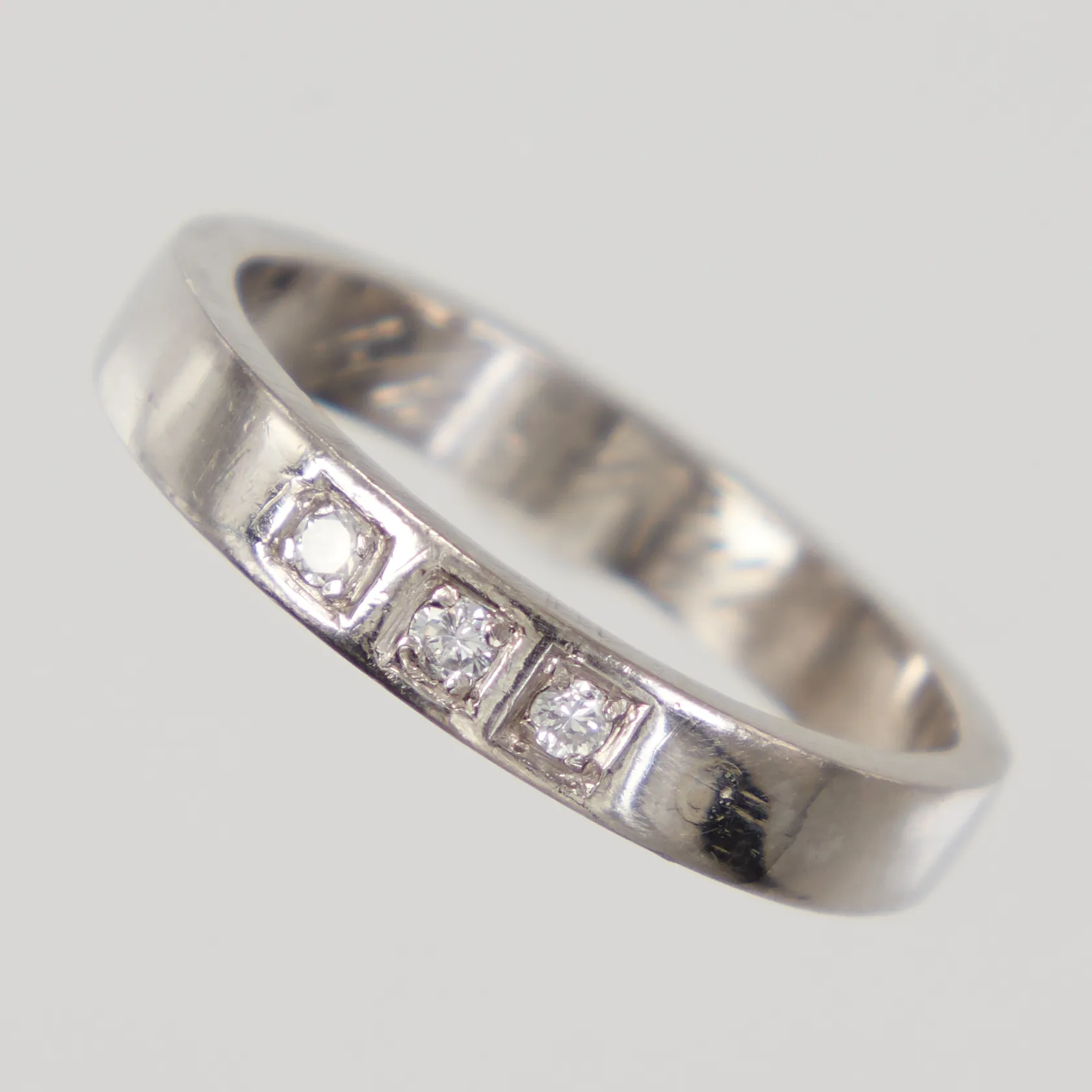 Ring stl 18 med briljantslipade diamanter 3 x 0,02ct, gravyr, vitguld, 18K, Vikt: 5,3 g.