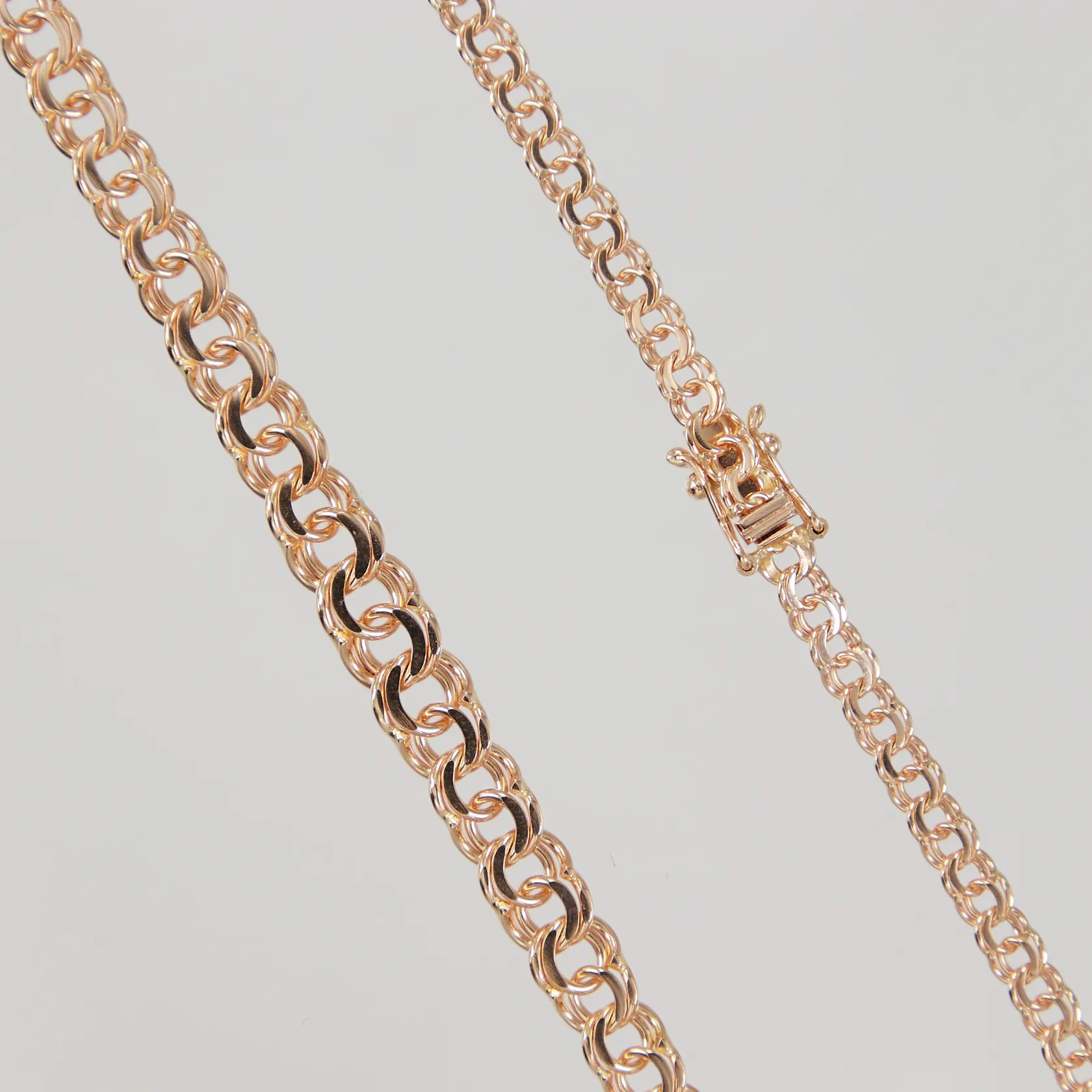 Kedja doserad Bismarck 41,5cm, bredd 3,8-6,9mm, 18K, Vikt: 16,2 g.