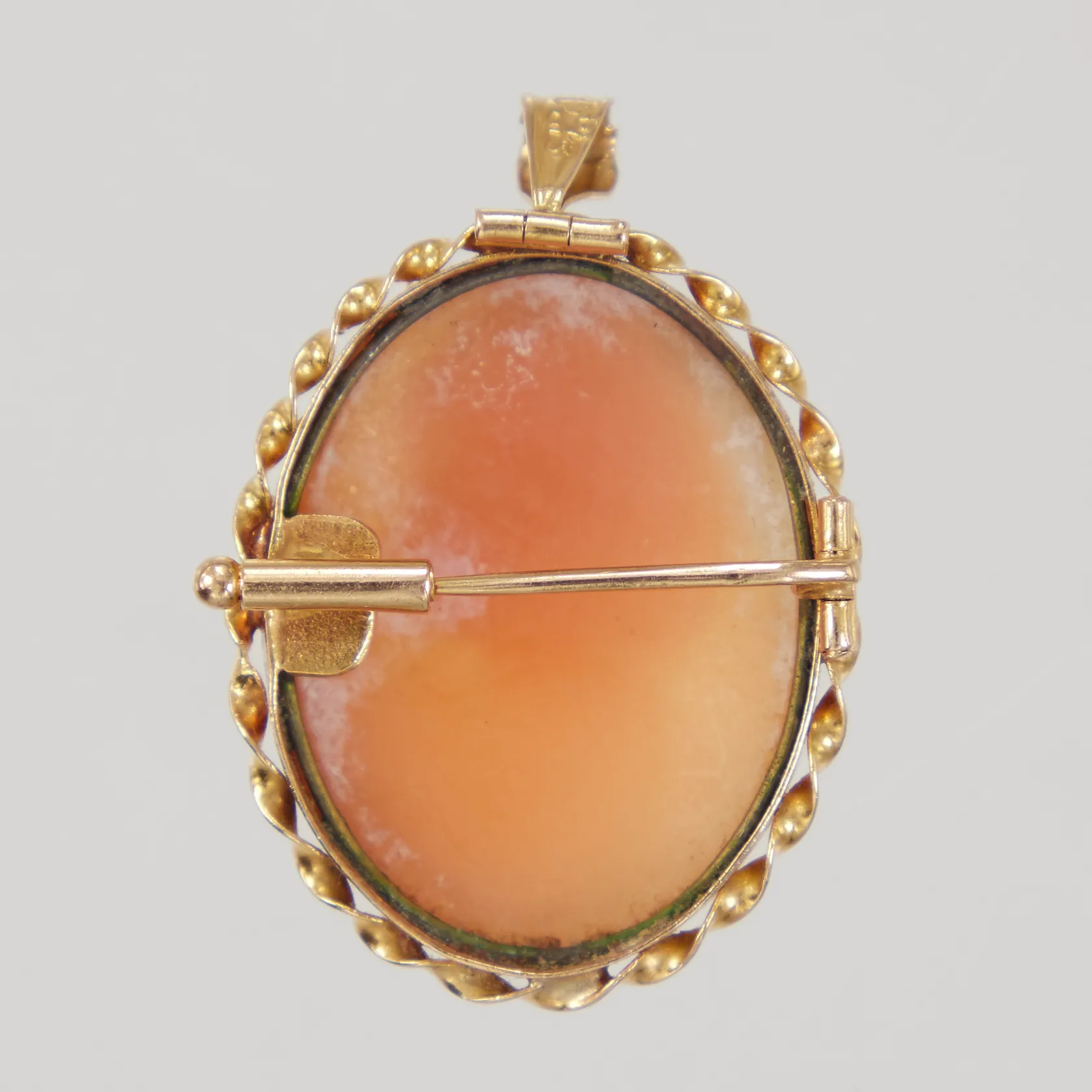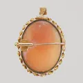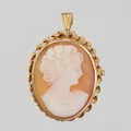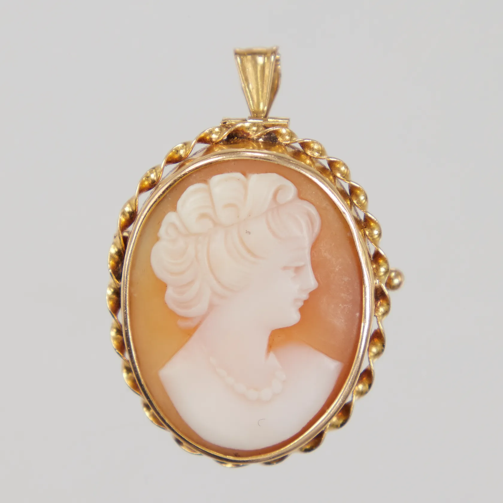 Hänge / Brosch med camé, längd inklusive ögla 36mm, bredd 22,5mm, bruttovikt: 5,7g, 18K