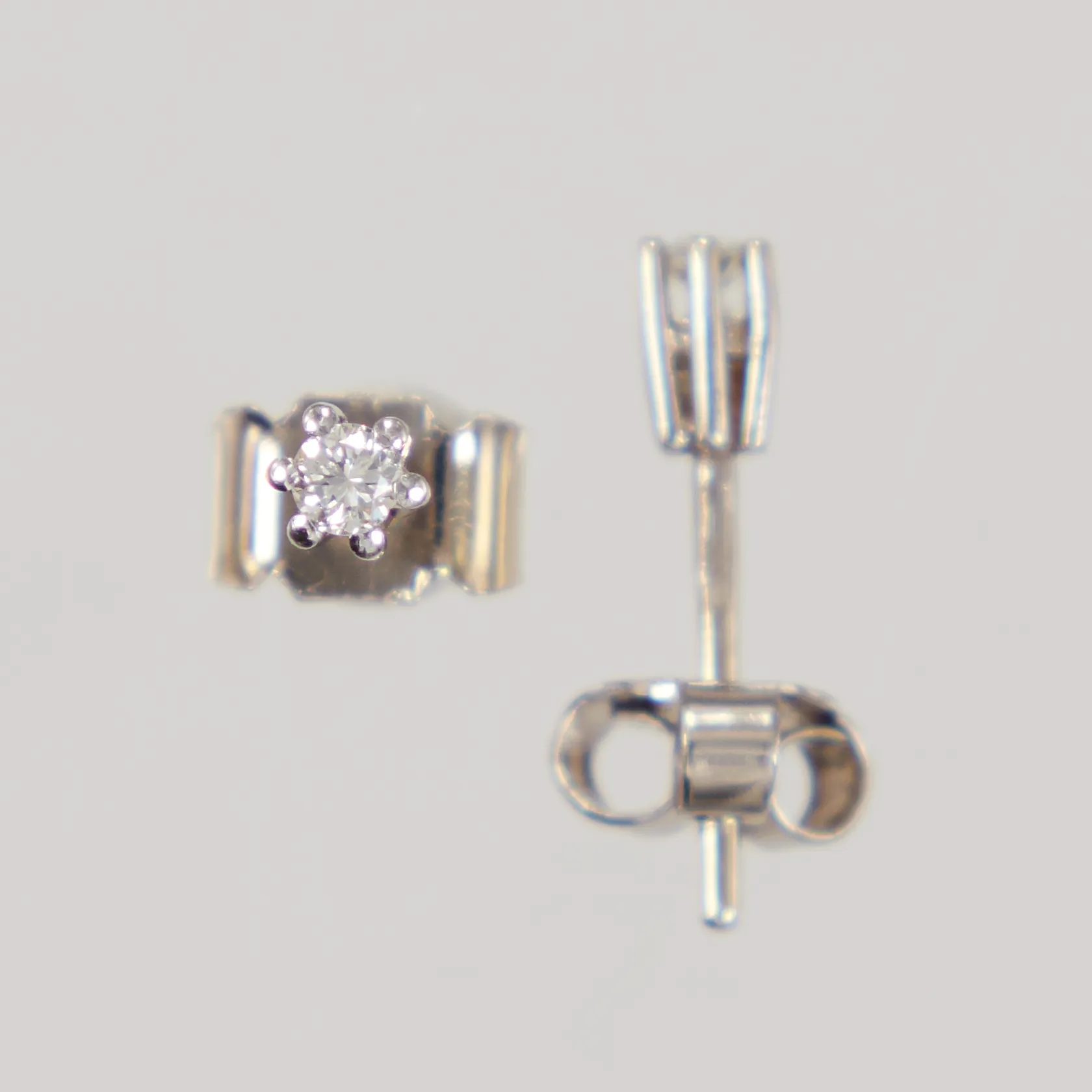 Ett par örhängen med diamanter 2x ca 0,03ct, Ø3mm, stift, omaka snurrebussar, 18K Vikt: 1 g.